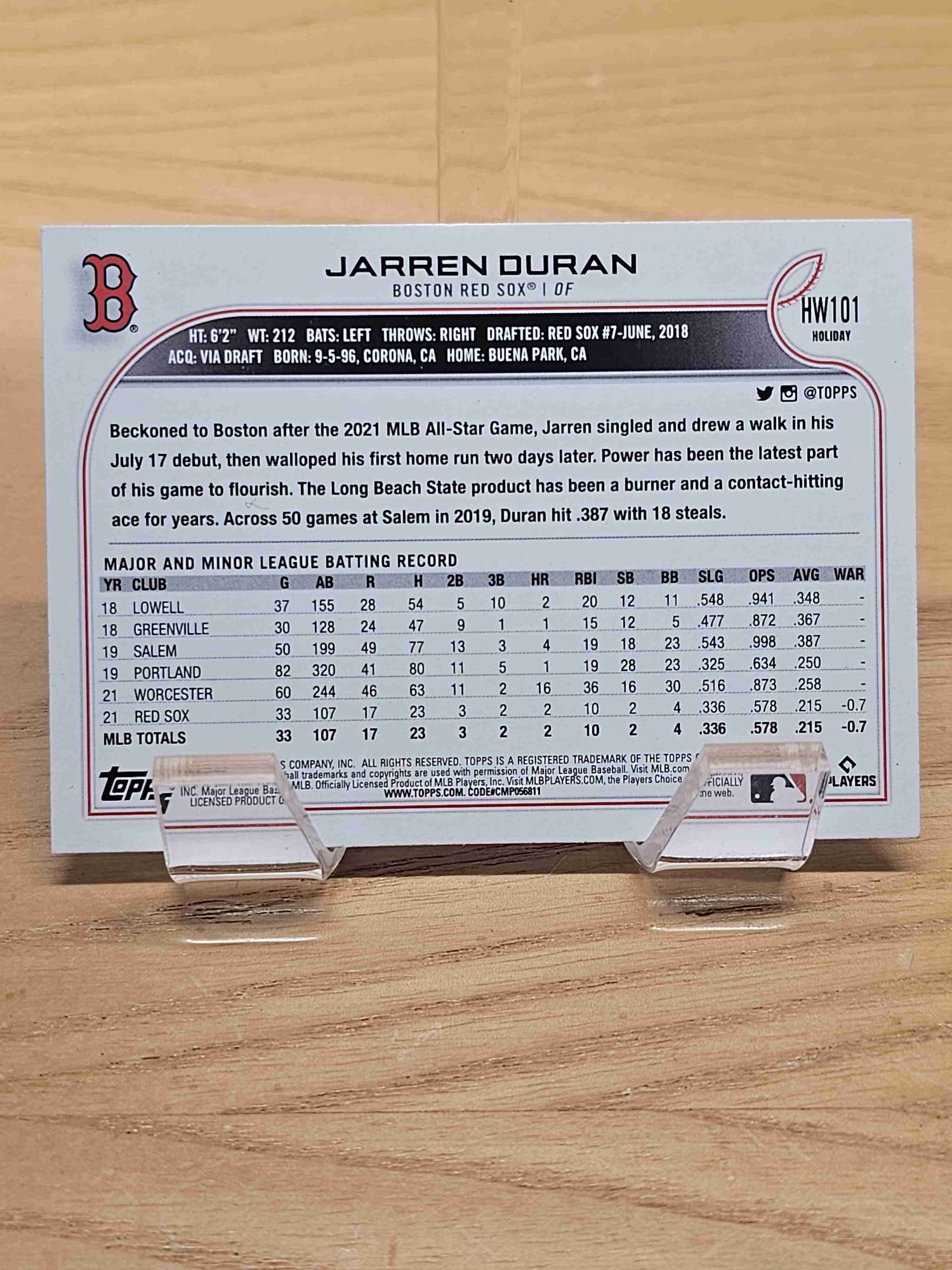 2022 Topps Holiday Baseball Rookie RC Jarren Duran Boston Red Sox Card #HW101