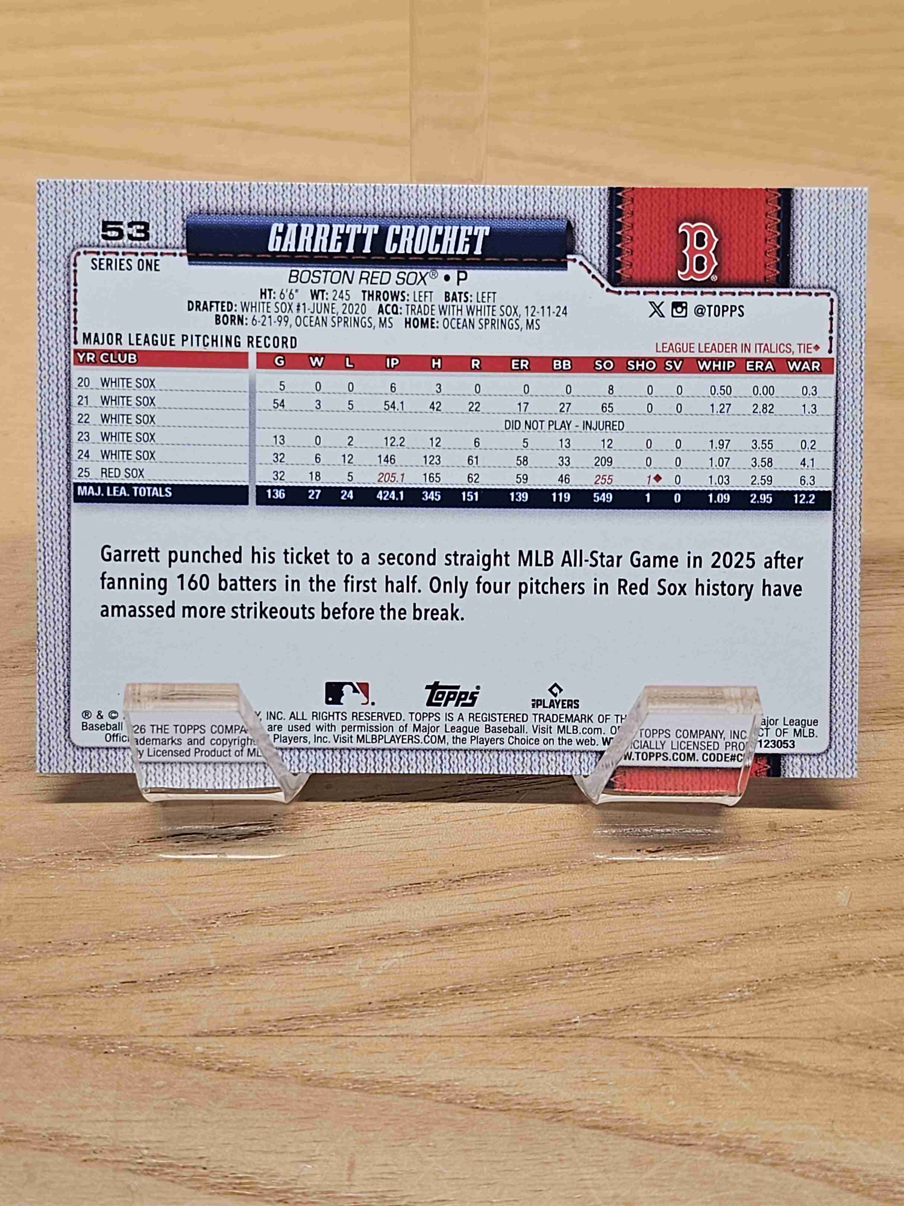 2026 Topps Series One Baseball Garrett Crochet Boston Red Sox Card #53
