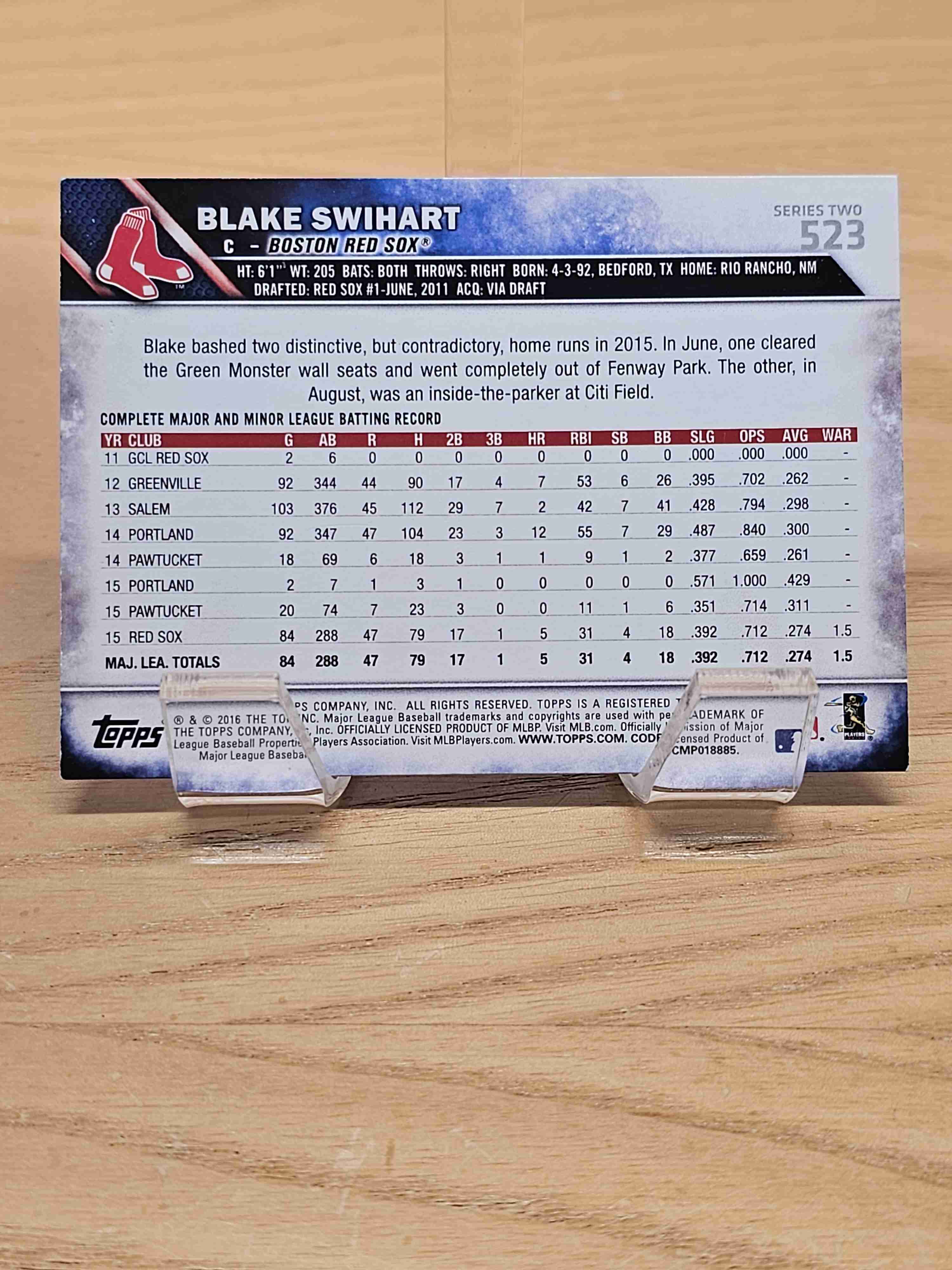 2016 Topps Series Two Baseball Future Stars Blake Swihart Boston Red Sox Card #523
