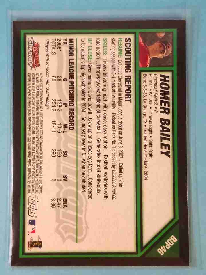 2007 Bowman Chrome RC Homer Bailey Cincinnati Reds #BDP46
