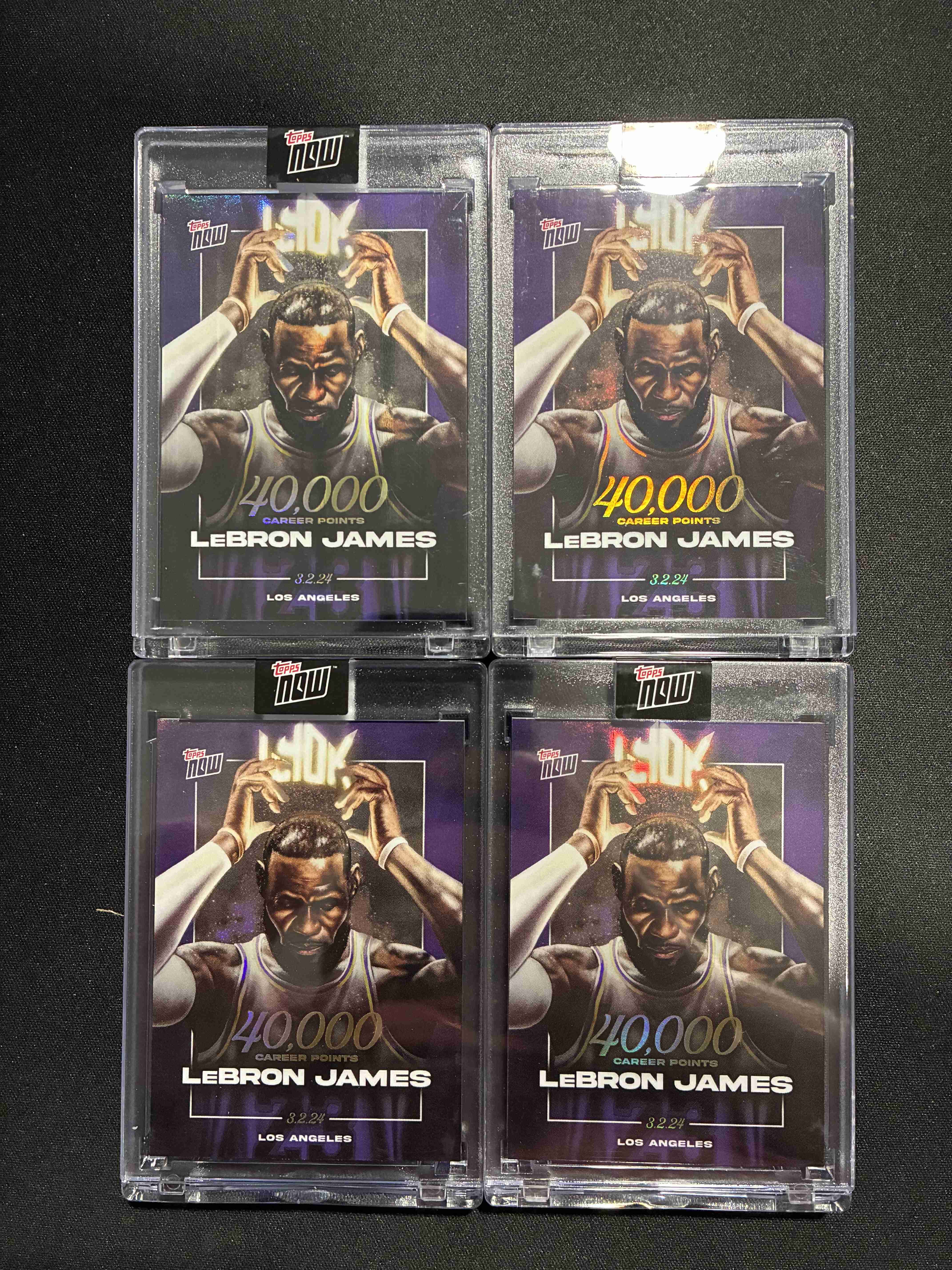You are bidding on a 4 card encased lot of 2024 Topps NOW LeBron James cards commemorating his 40,000th point. Cards will be shipped in one touch cases with original sticker seals as shown. These are a great add to any collection. Please ask any questions before bidding.