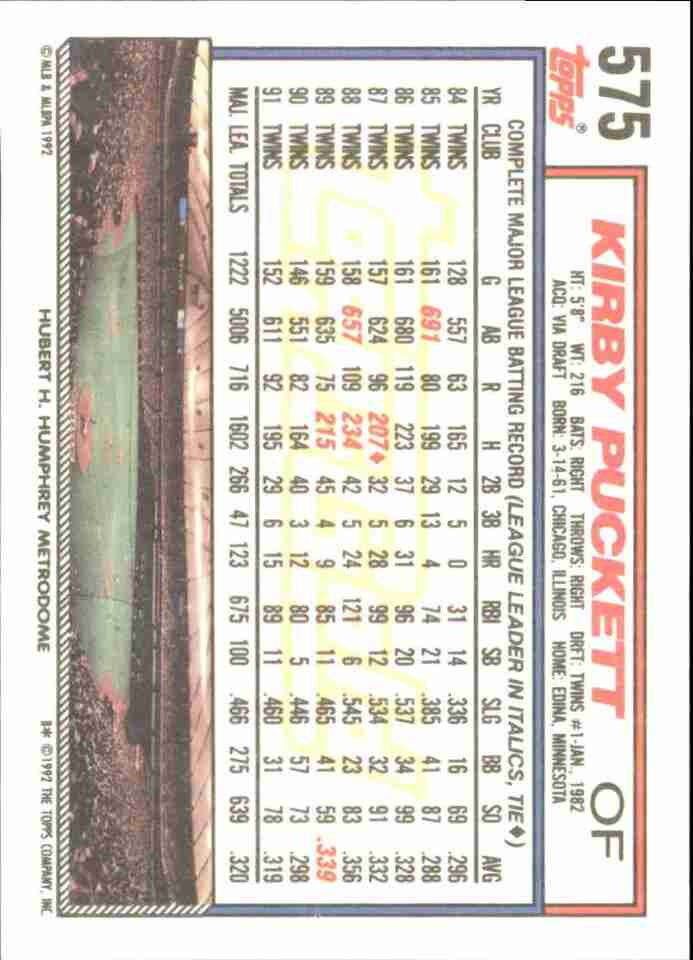 1992 Topps Gold #575 Kirby Puckett Minnesota Twins - NM-MT