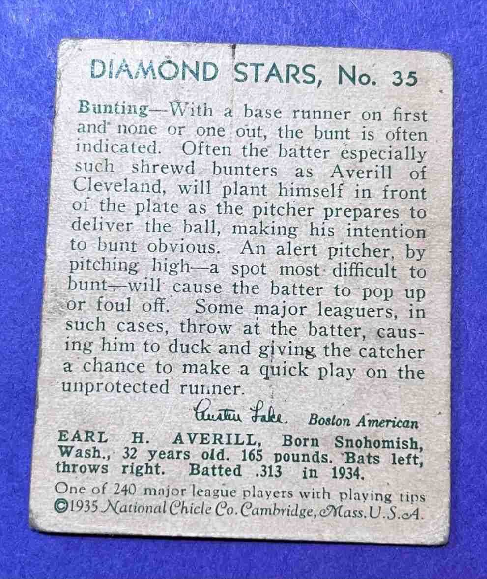 1934-36 DiamondStars EARLE AVERILL #35 HOF!