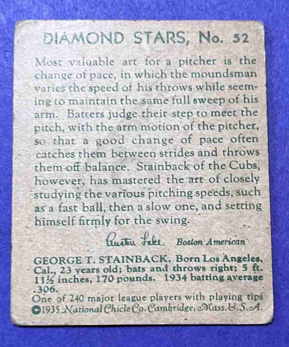 1934-36 DiamondStars GEORGE STAINBACK #52 +++