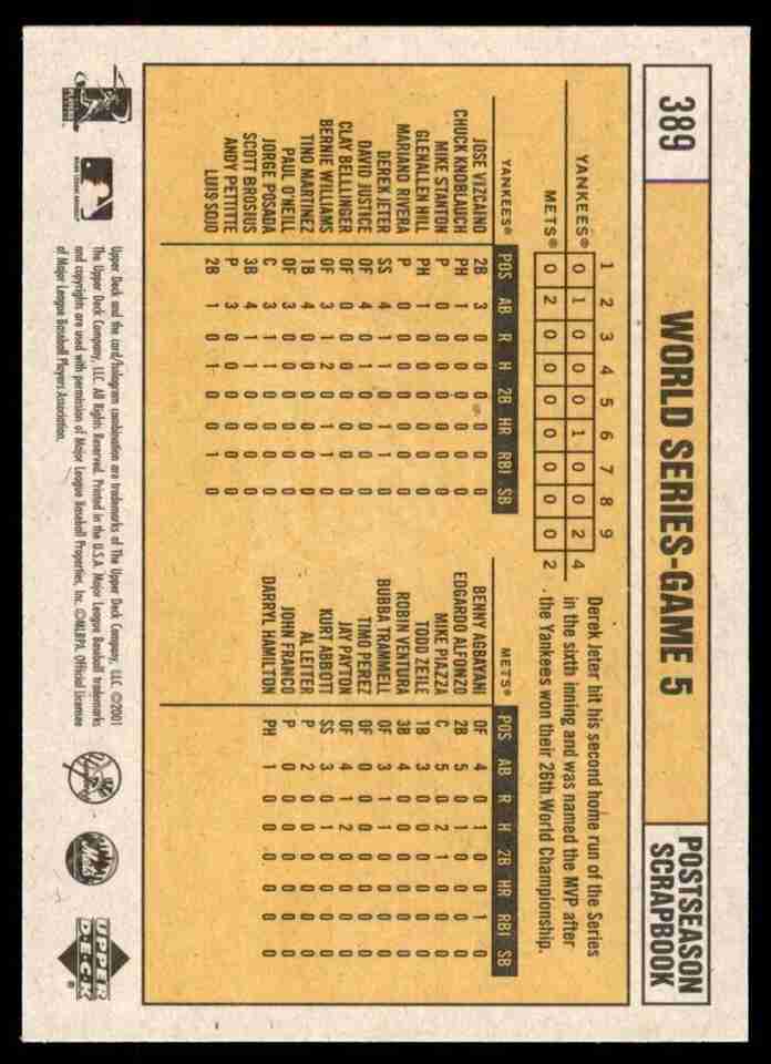 2001 Upper Deck Vintage game 5 Derek Jeter Yankees #389