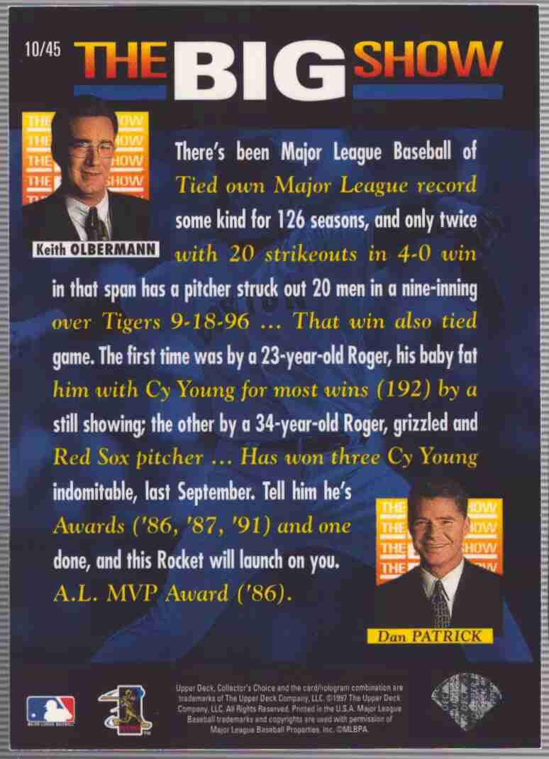 1997 Collector's Choice - The Big Show Baseball Roger Clemens #10