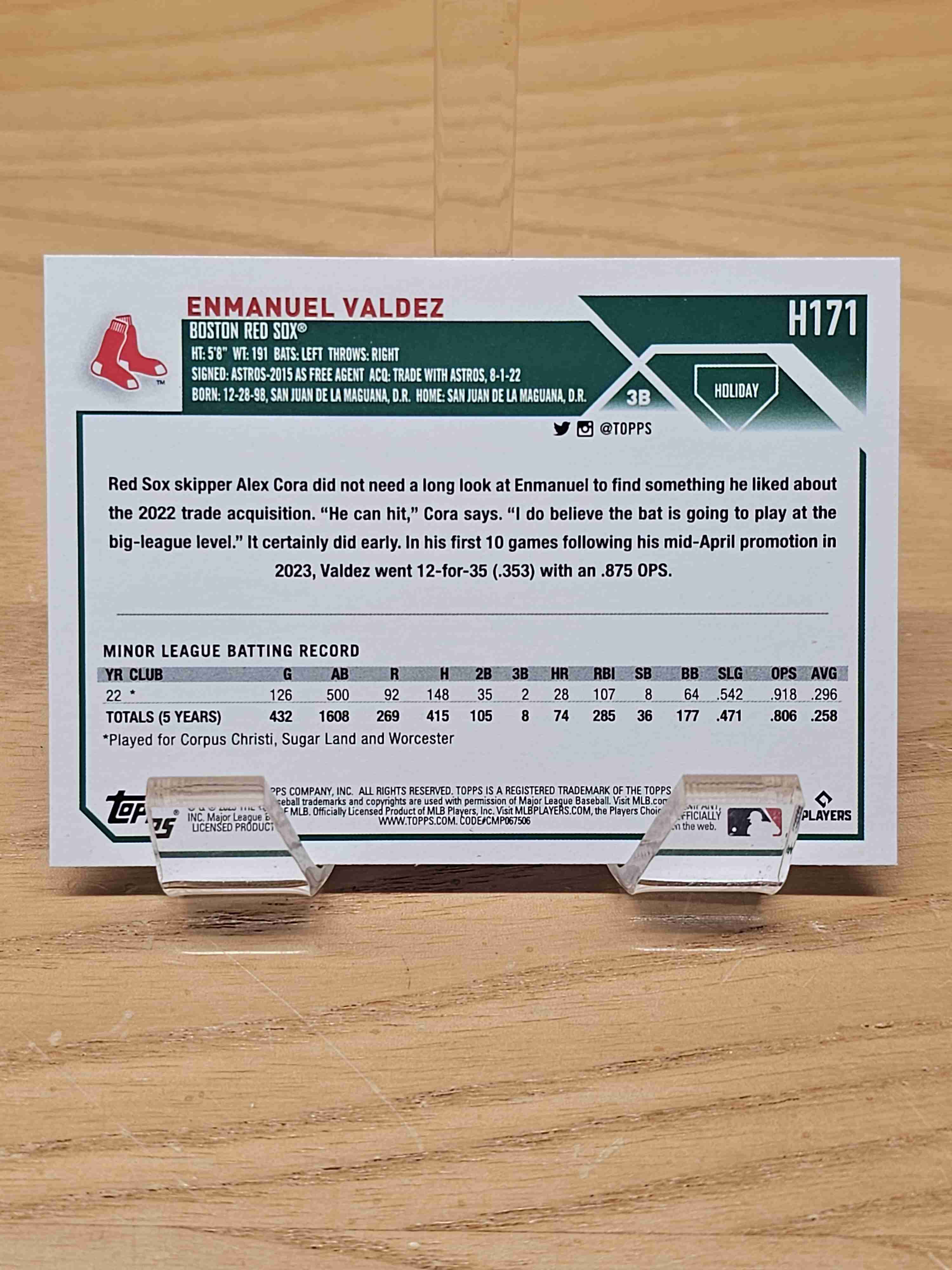 2023 Topps Holiday Baseball Rookie RC Enmanuel Valdez Boston Red Sox Card #H171
