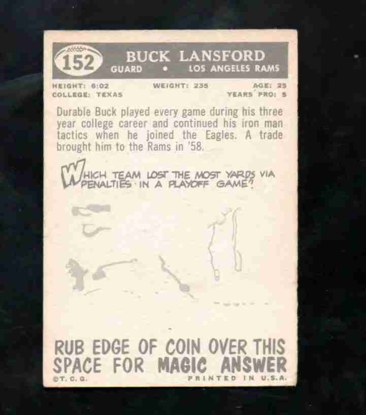 1959 Topps # 152 BUCK LANSFORD L.A. Rams