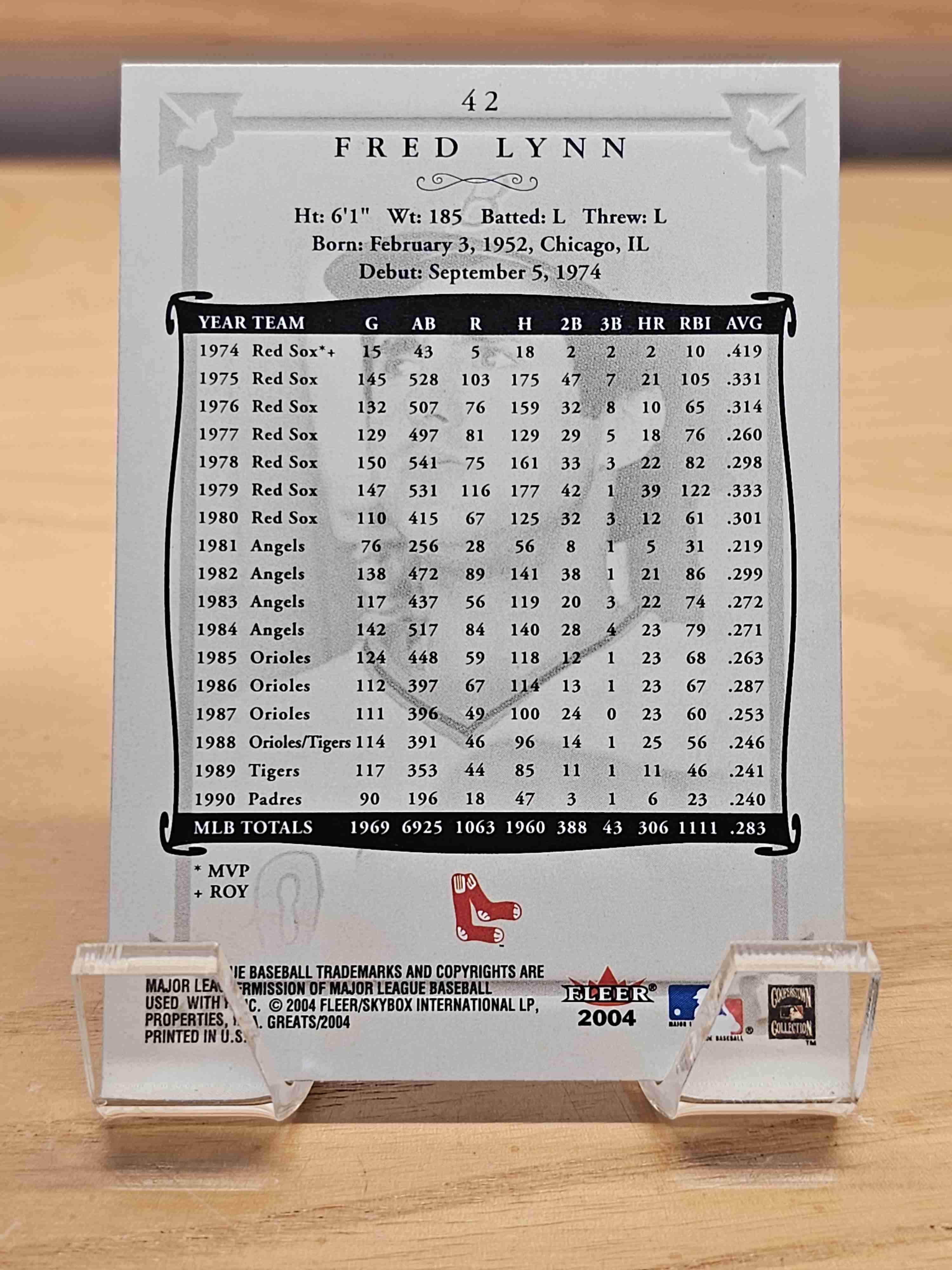 2004 Fleer Greats Of The Game Fred Lynn Boston Red Sox #42
