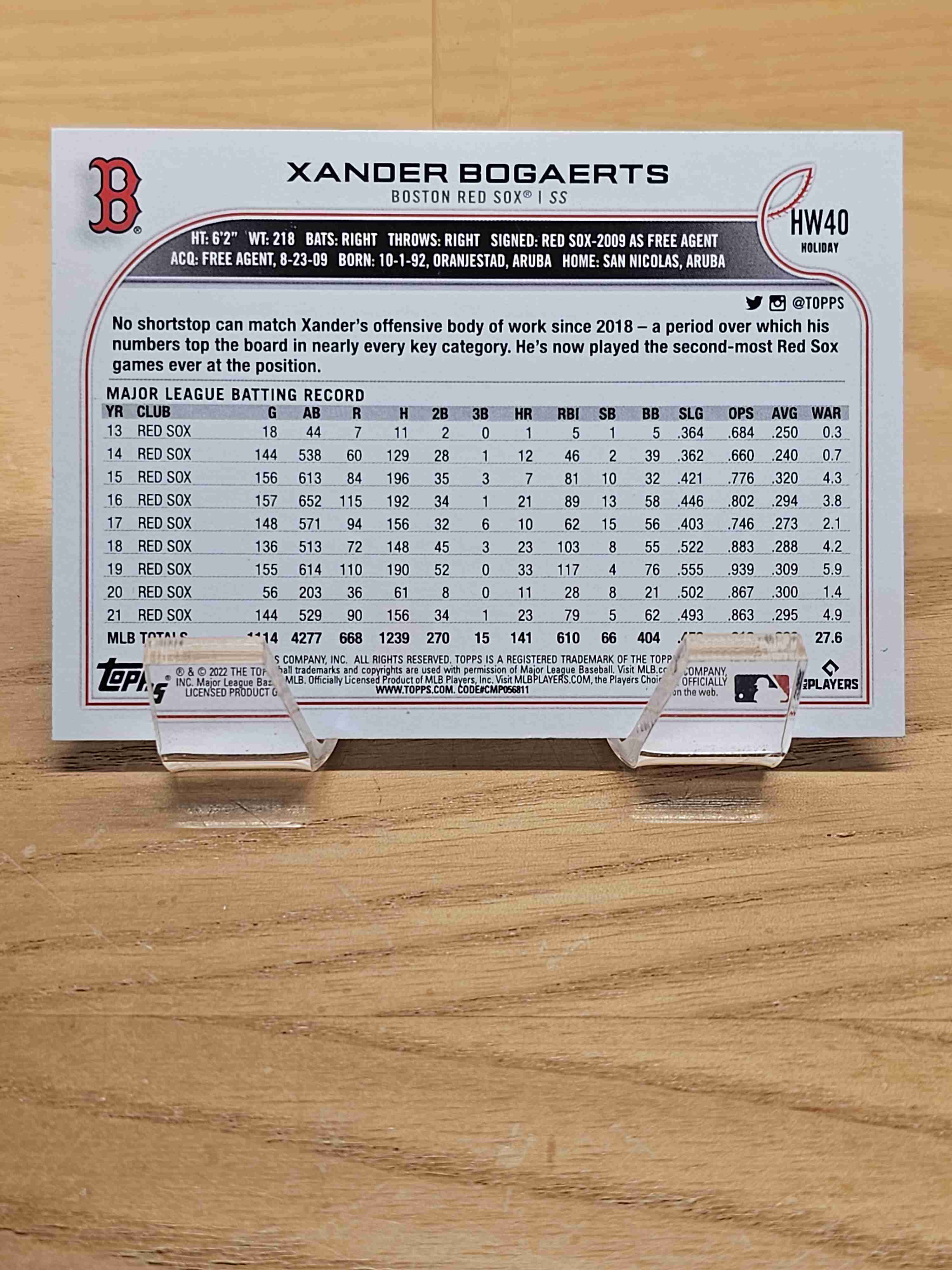 2022 Topps Holiday Baseball Xander Bogaerts Boston Red Sox Card #HW40