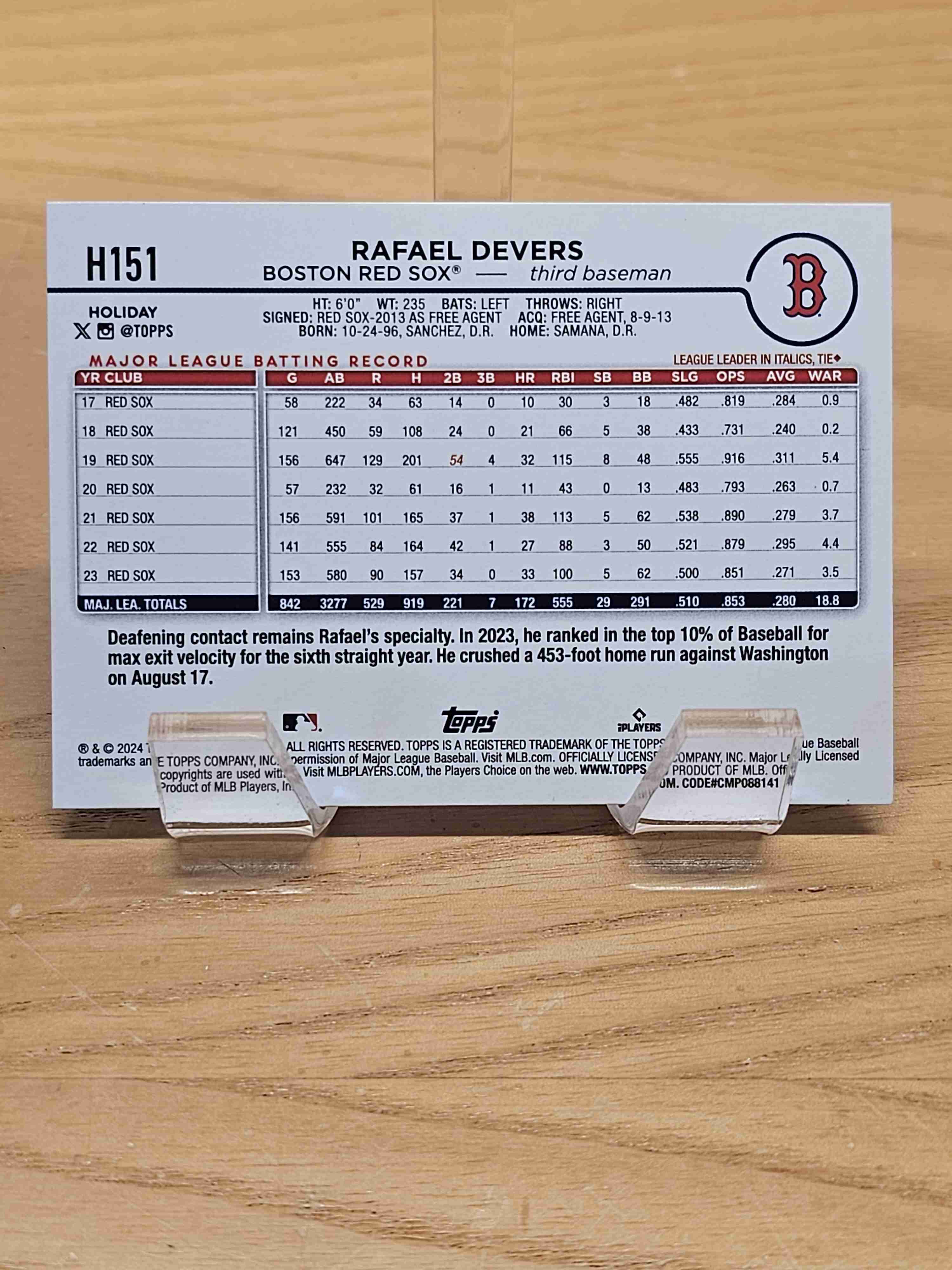 2024 Topps Holiday Baseball Rafael Devers Boston Red Sox Card #H151