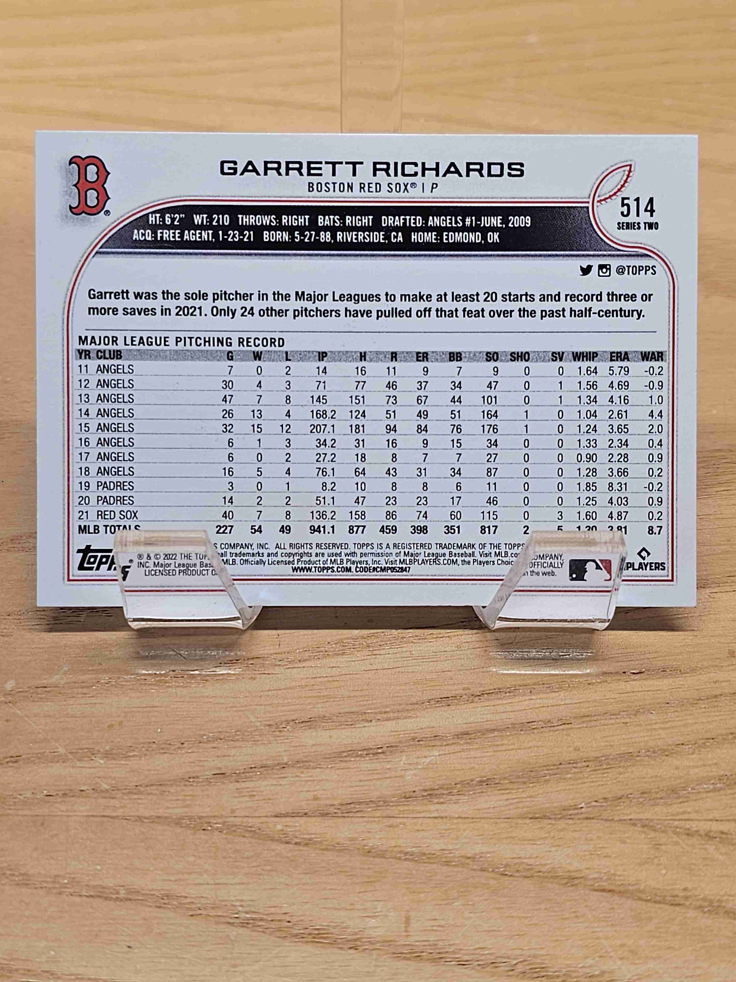 2022 Topps Series Two Garrett Richards Red Sox #514
