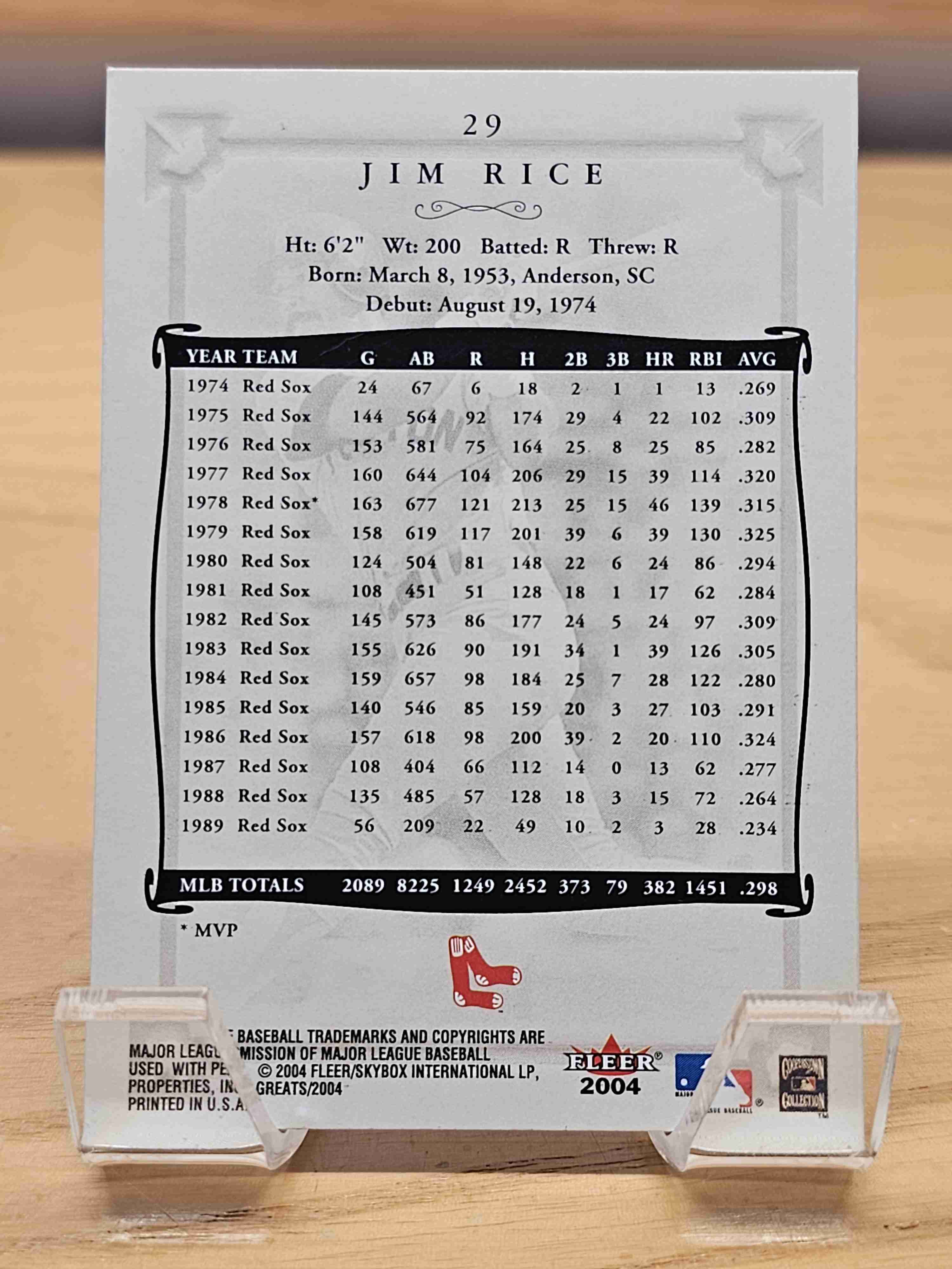 2004 Fleer Greats Of The Game Jim Rice Boston Red Sox #29
