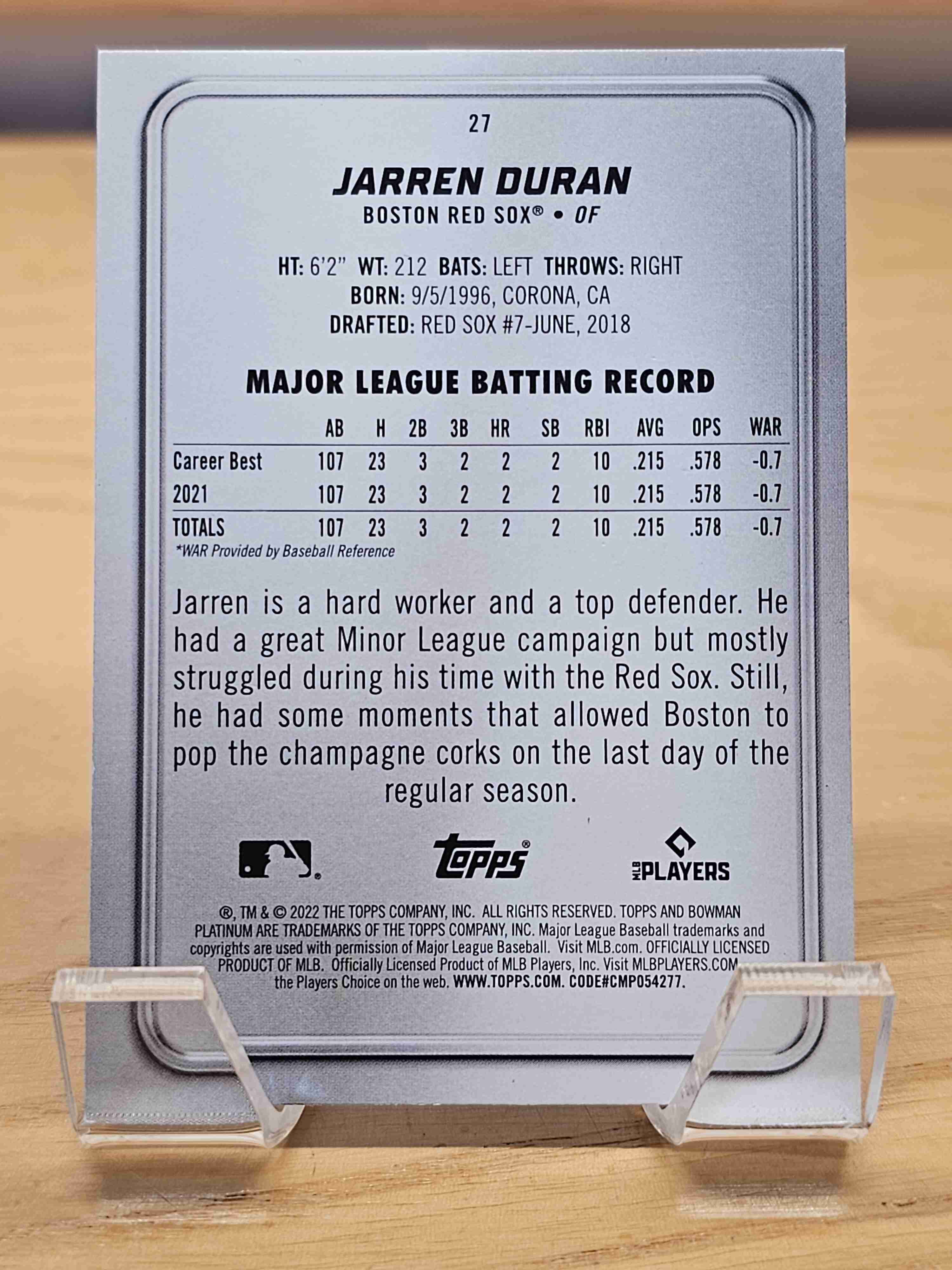 2022 Bowman Platinum Baseball Rookie RC Jarren Duran Boston Red Sox Card #27