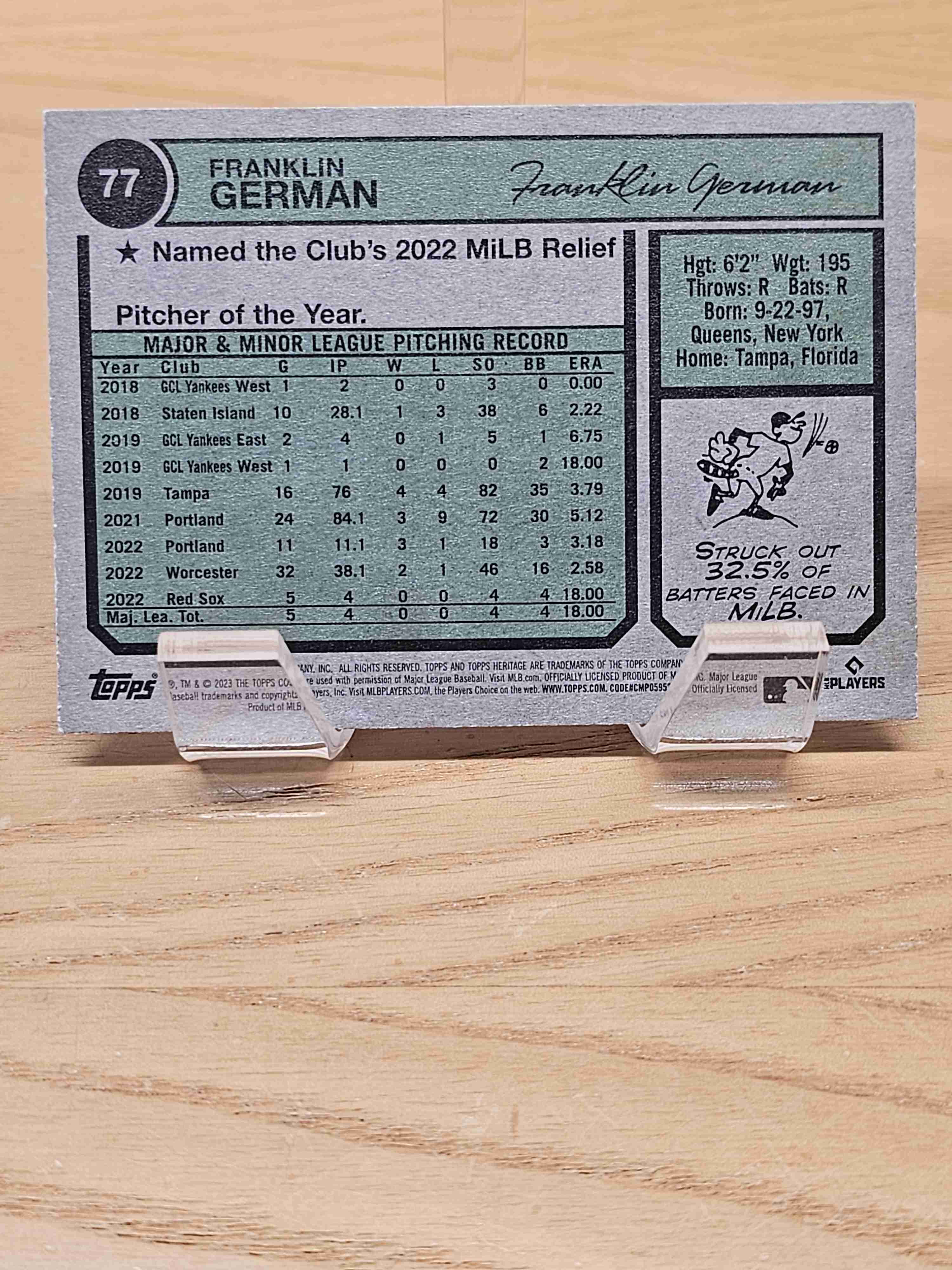 2023 Topps Heritage Rookie RC Franklin German Red Sox #77