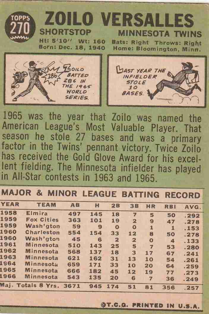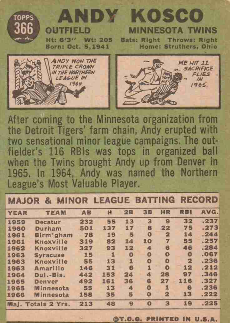 #270 Zoilo Versalles (EX) OC #366 Andy Kosco (EX/EX+) upper border mild crease