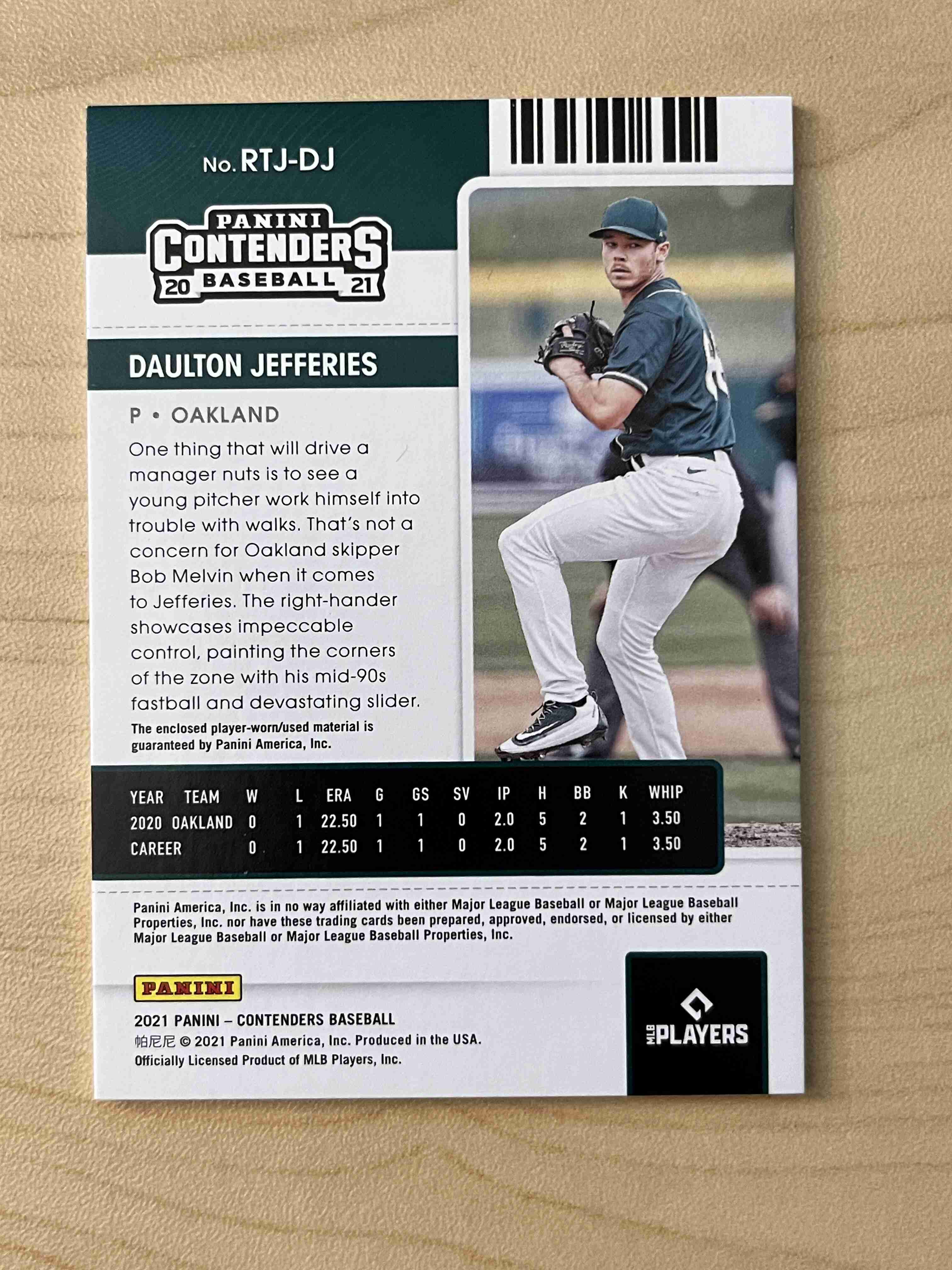 Daulton Jeffries 2021 Panini Contenders Rookie Ticket Jerse
