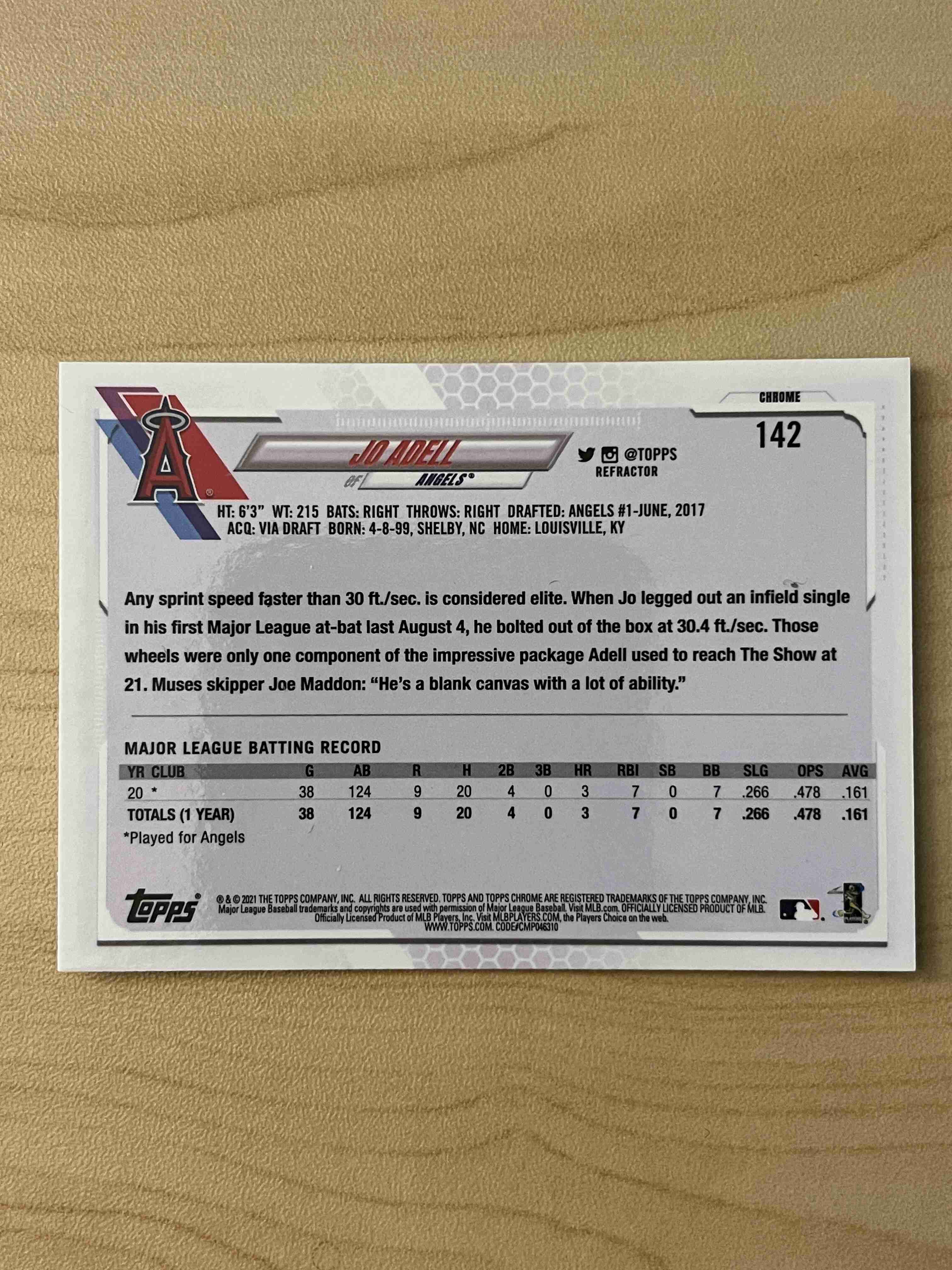 Jo Adell 2021 Topps Chrome Refractor Rookie Card #142