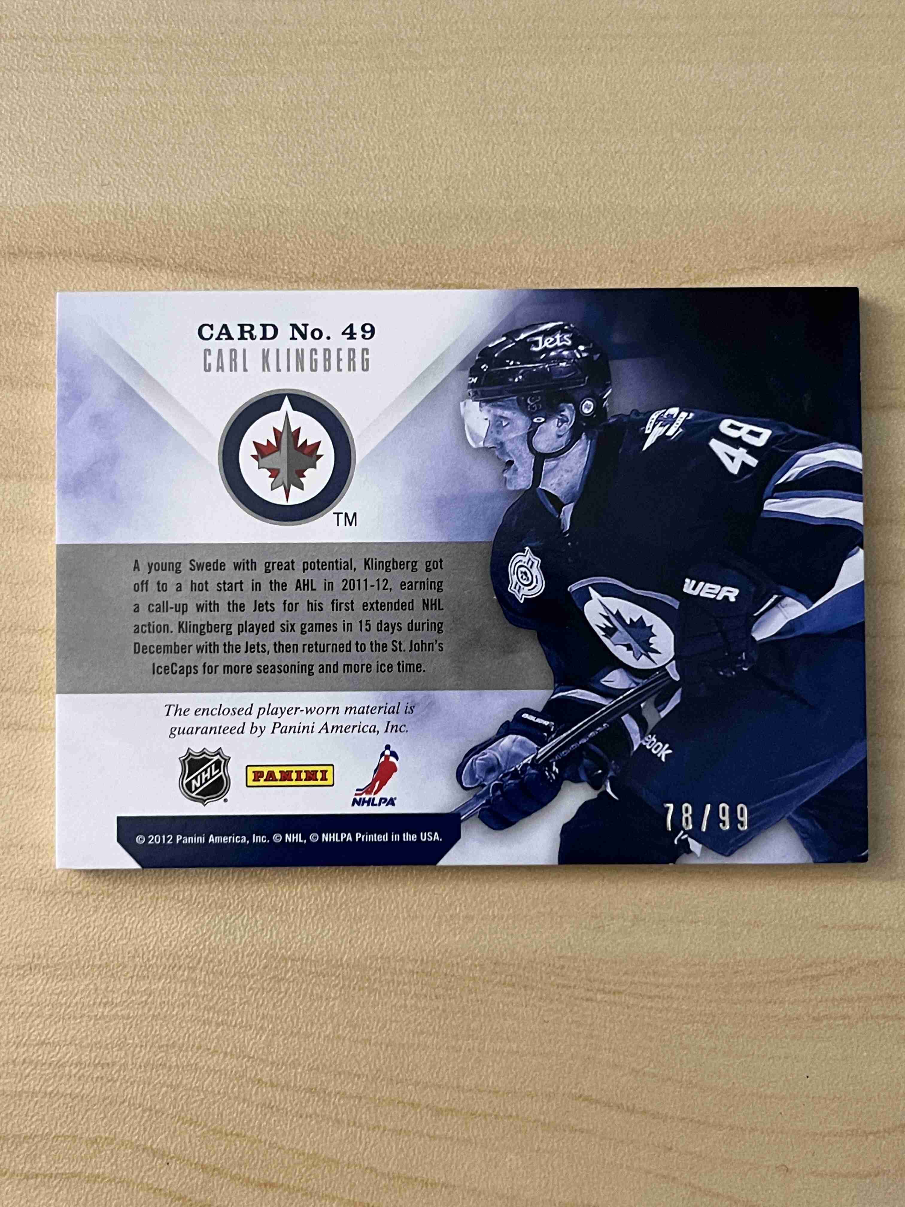Carl Klingberg 2012 Panini Prime Time Rookie Jersey (#/99)