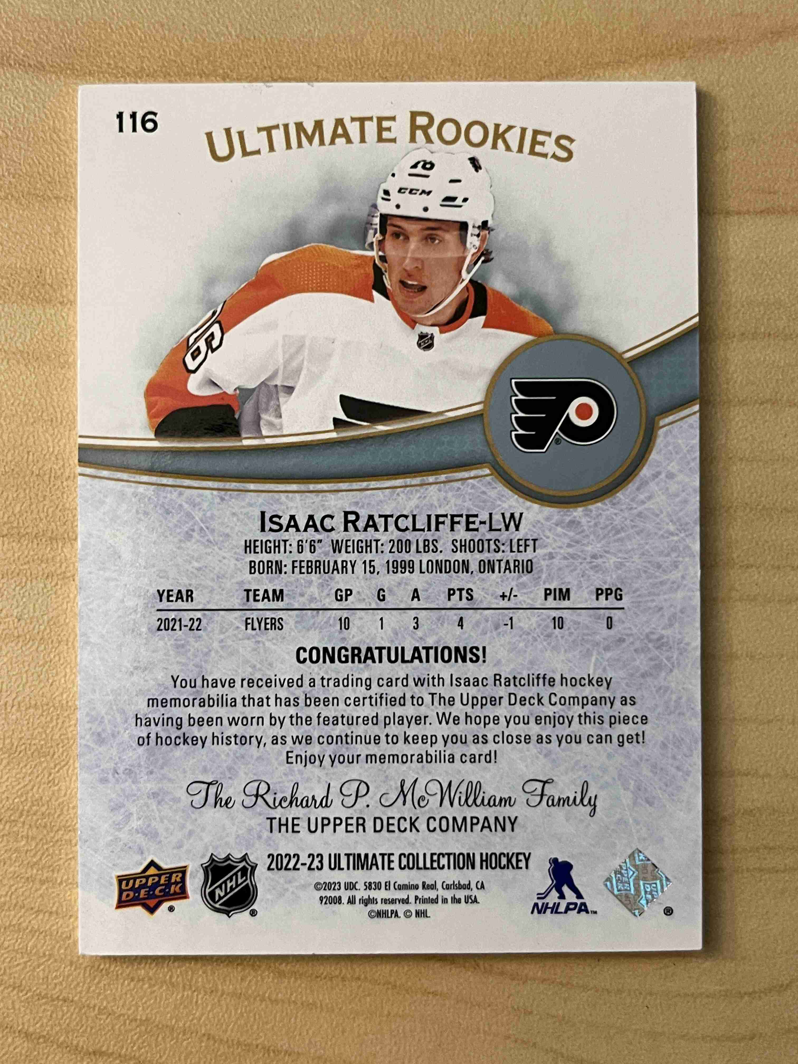 Isacc Ratcliffe 2022-23 Ultimate Collection Rookies Jersey