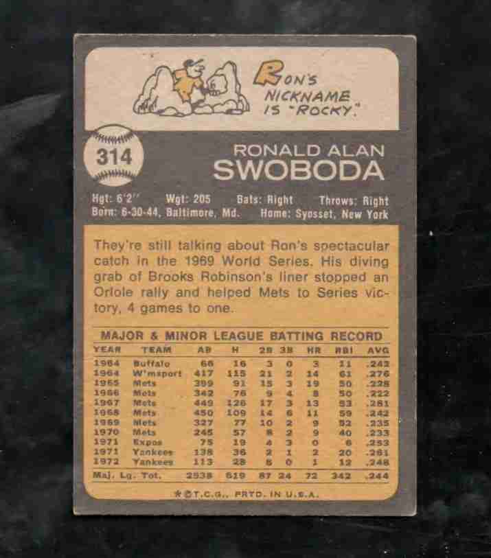 1973 Topps # 314 RON SWODODA NY Yankees NM