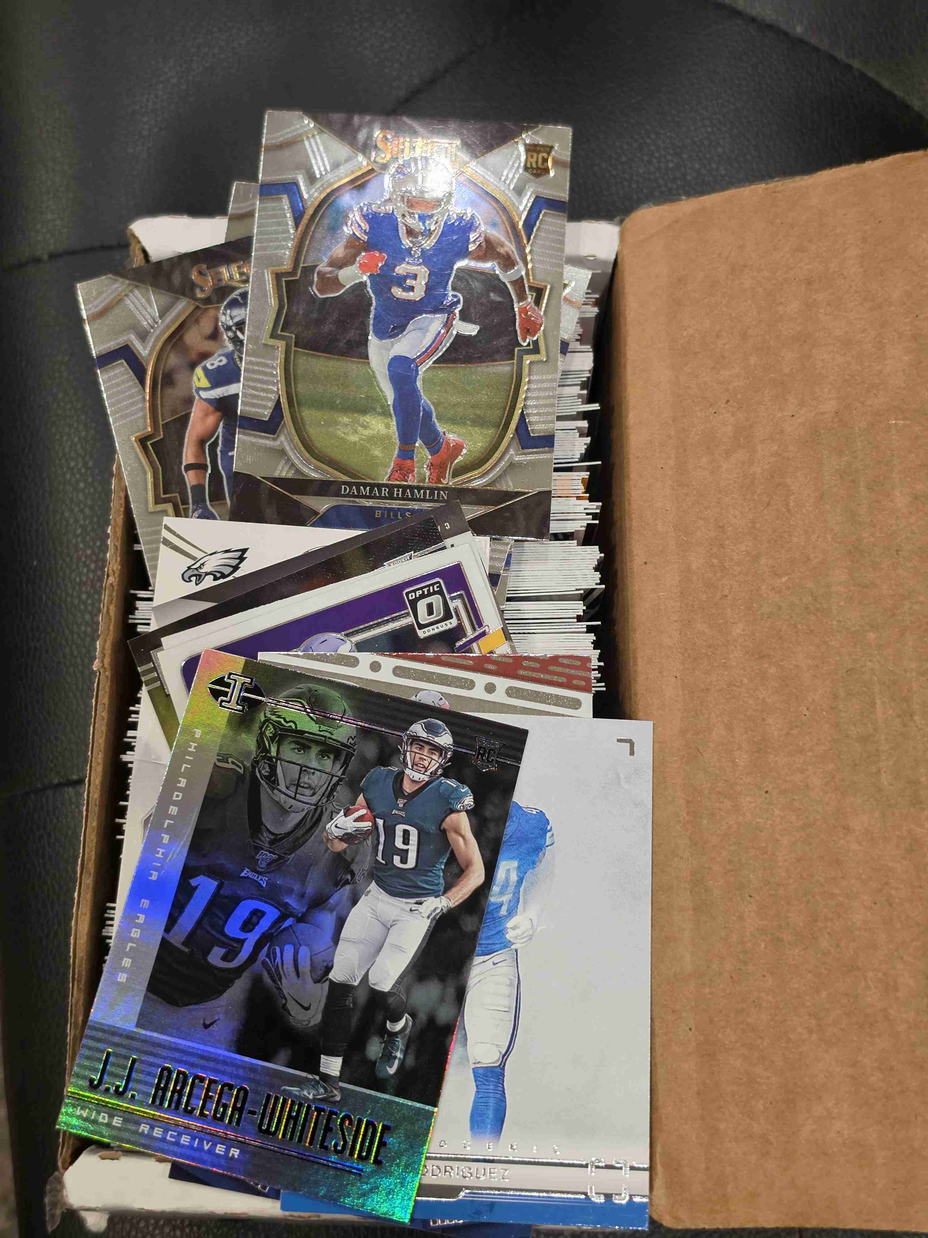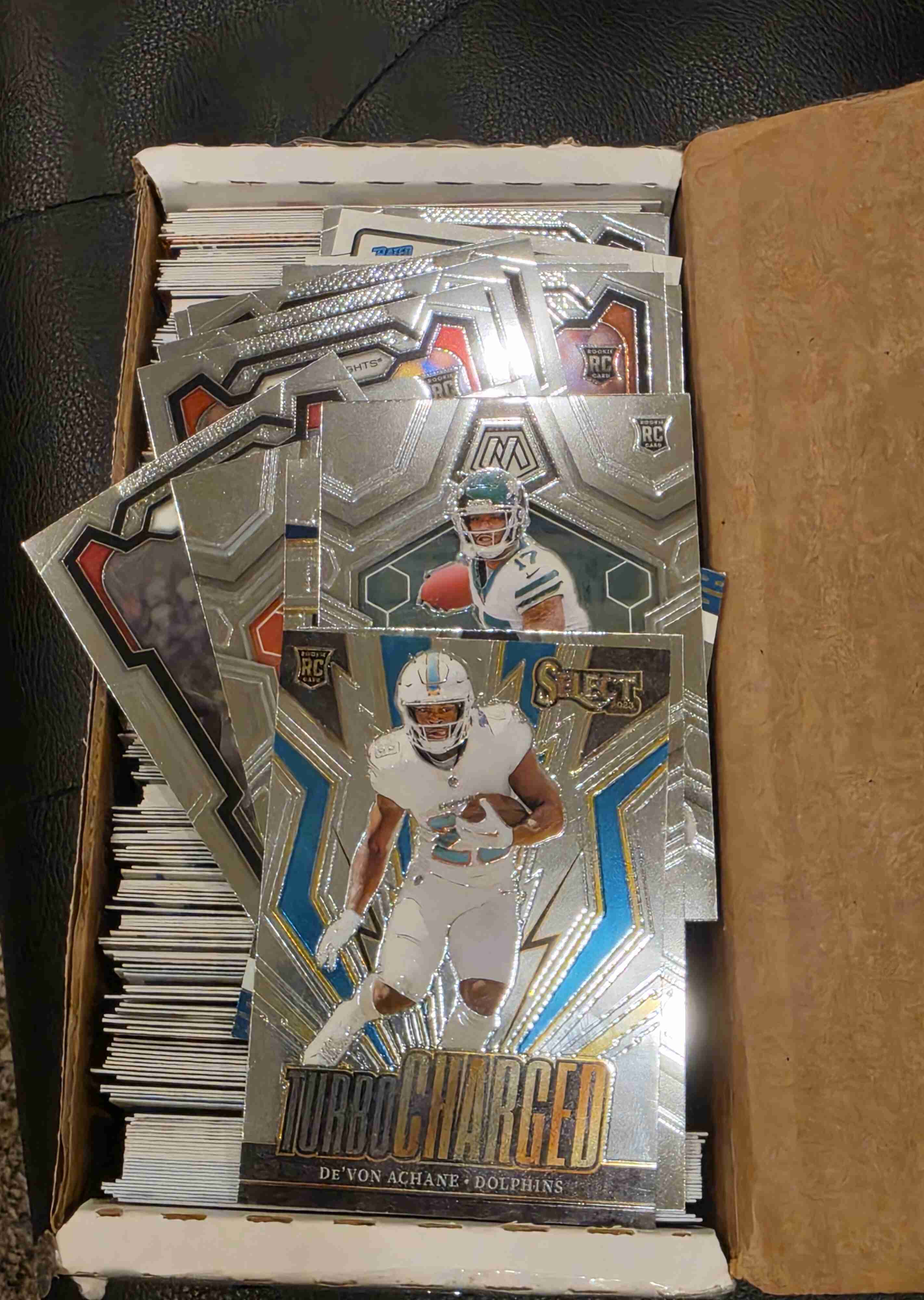 Exact card count is unknown. Box is a 400 count box (see last photo). All cards are football rookies from the last several years.
