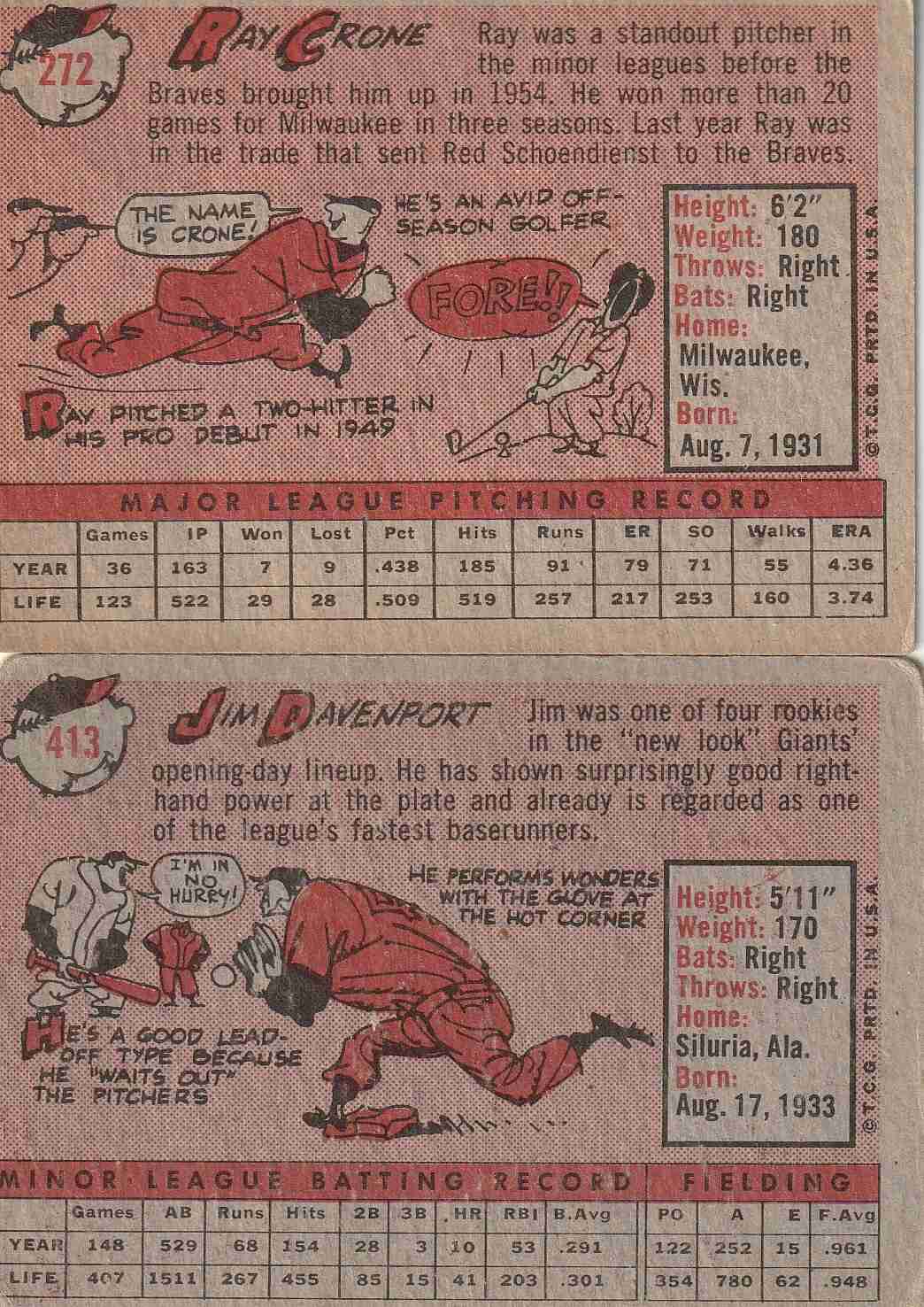 #272 Ray Crone (EX+) OC #413 Jim Davenport (Good-VG)
