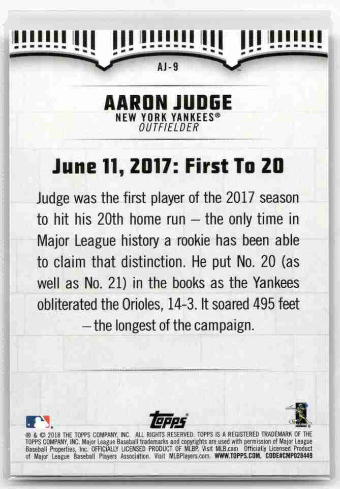 Aaron Judge 2018 Topps Aaron Judge Highlights #AJ-9 New York Yankees