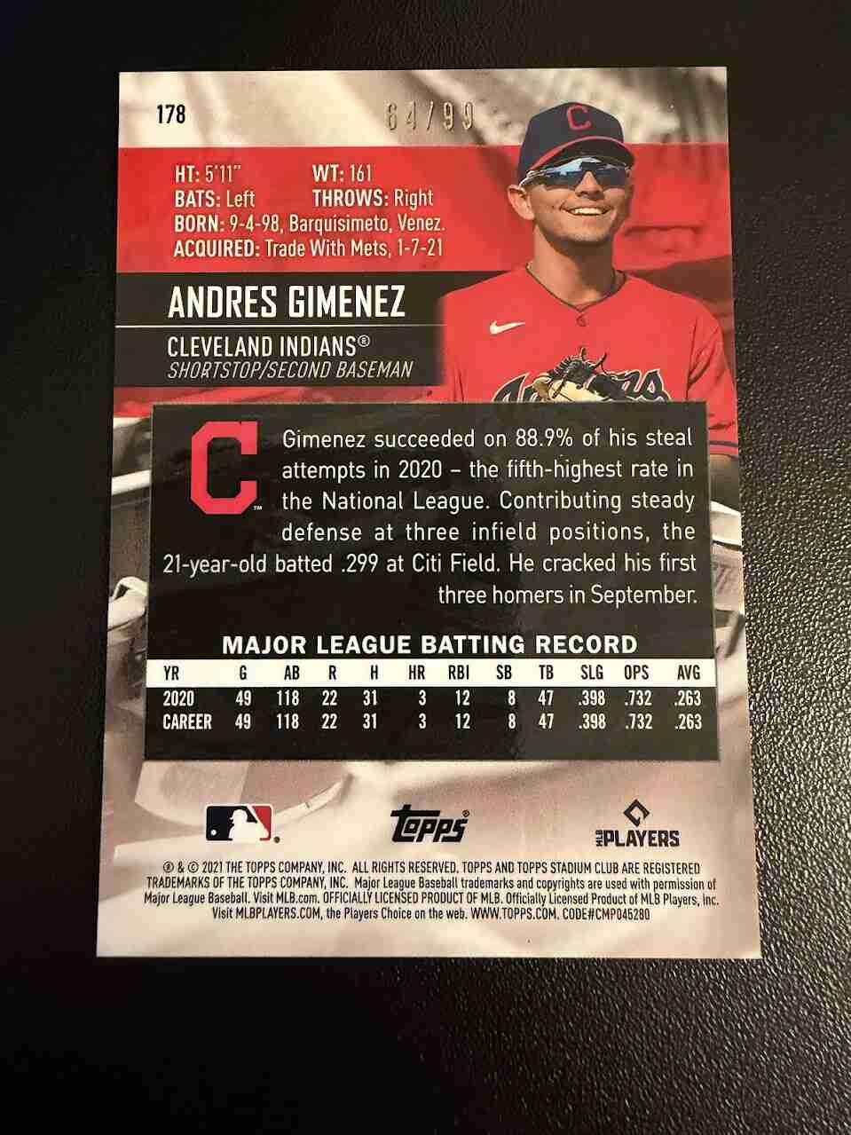 2021 Stadium Club Chrome Andres Gimenez Orange Ref #/99 RC