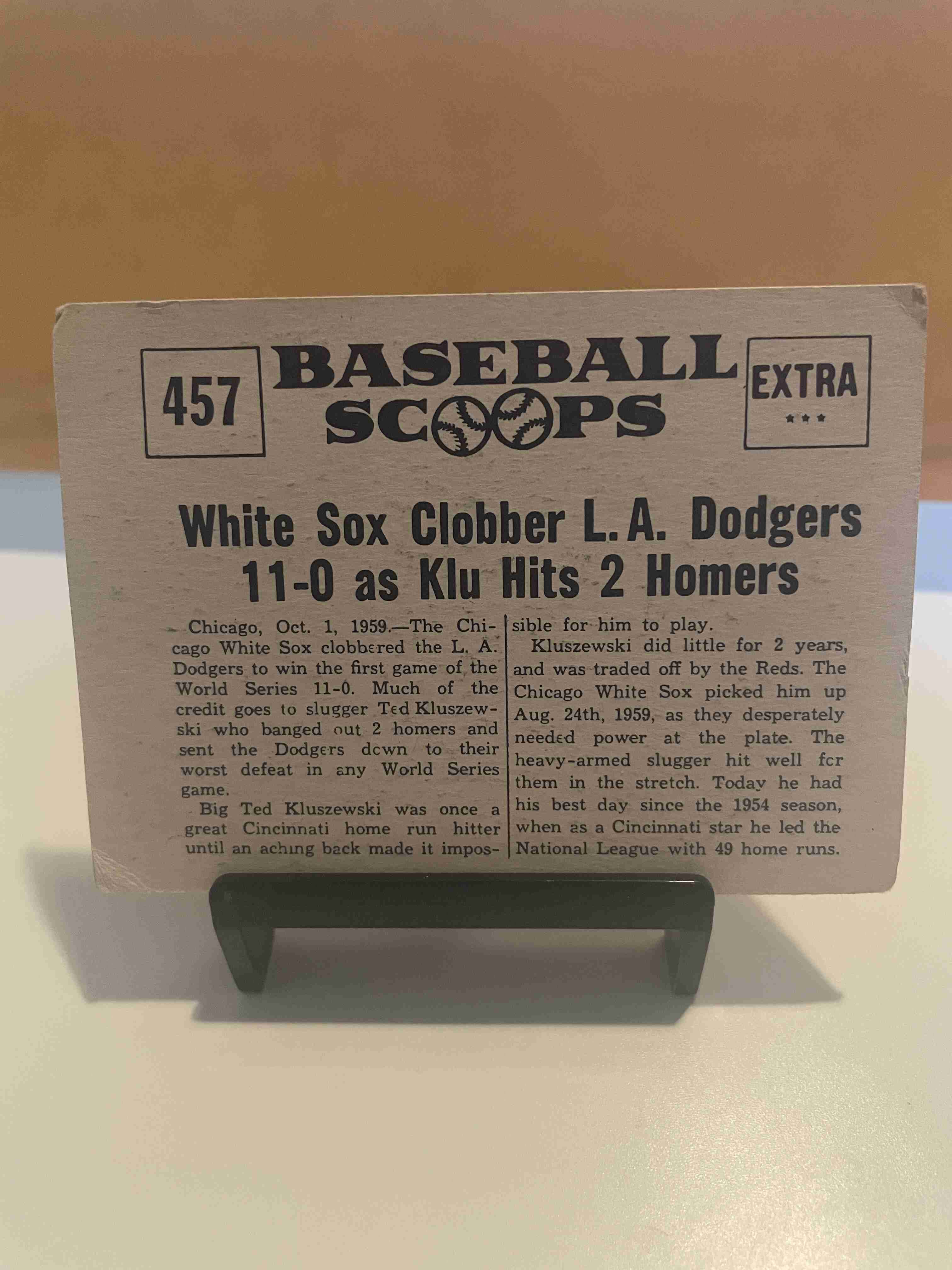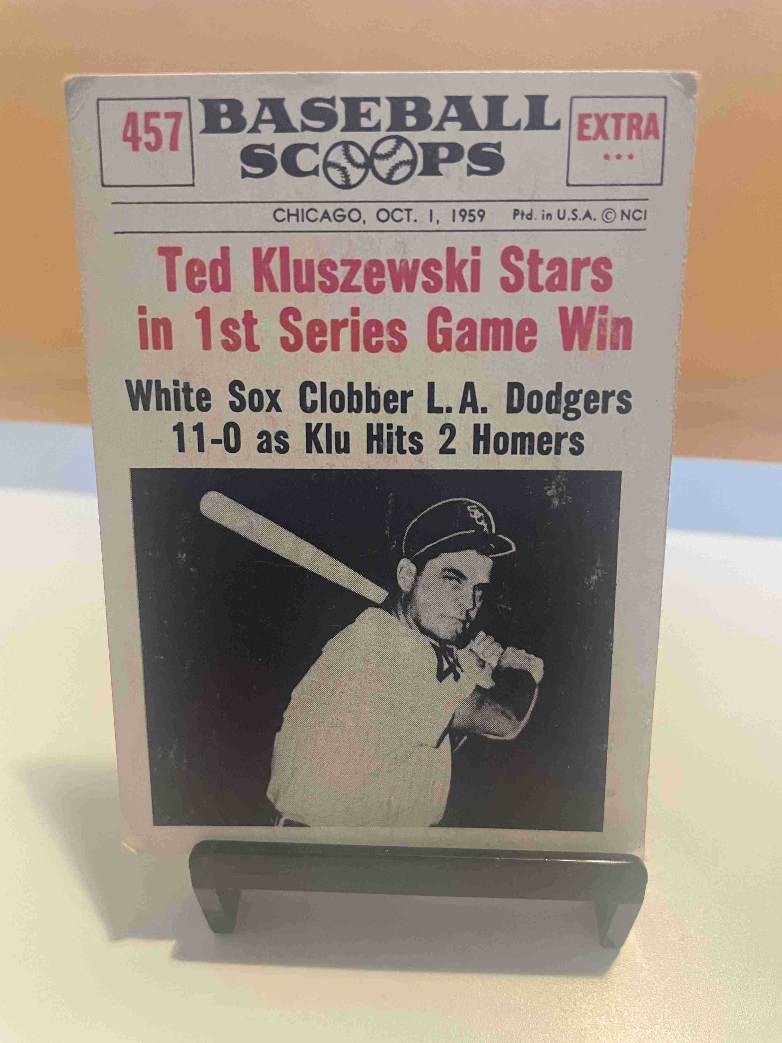 1961 Nu-Card Scoops #457 Ted Klusewski . Heavy corner wear no creases.