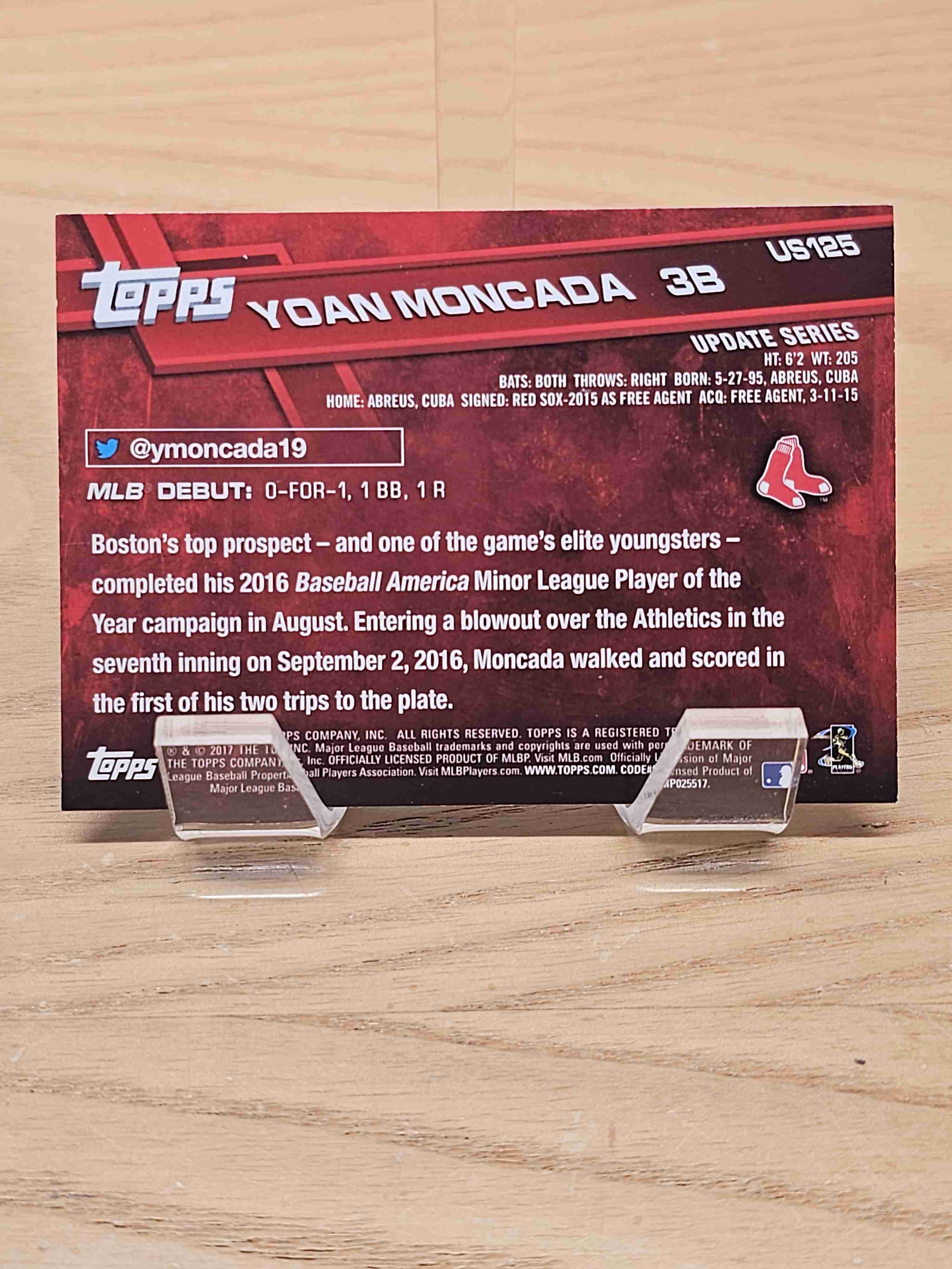 2017 Topps Update Series Baseball Rookie RC Yoan Moncada Boston Red Sox Card #US125