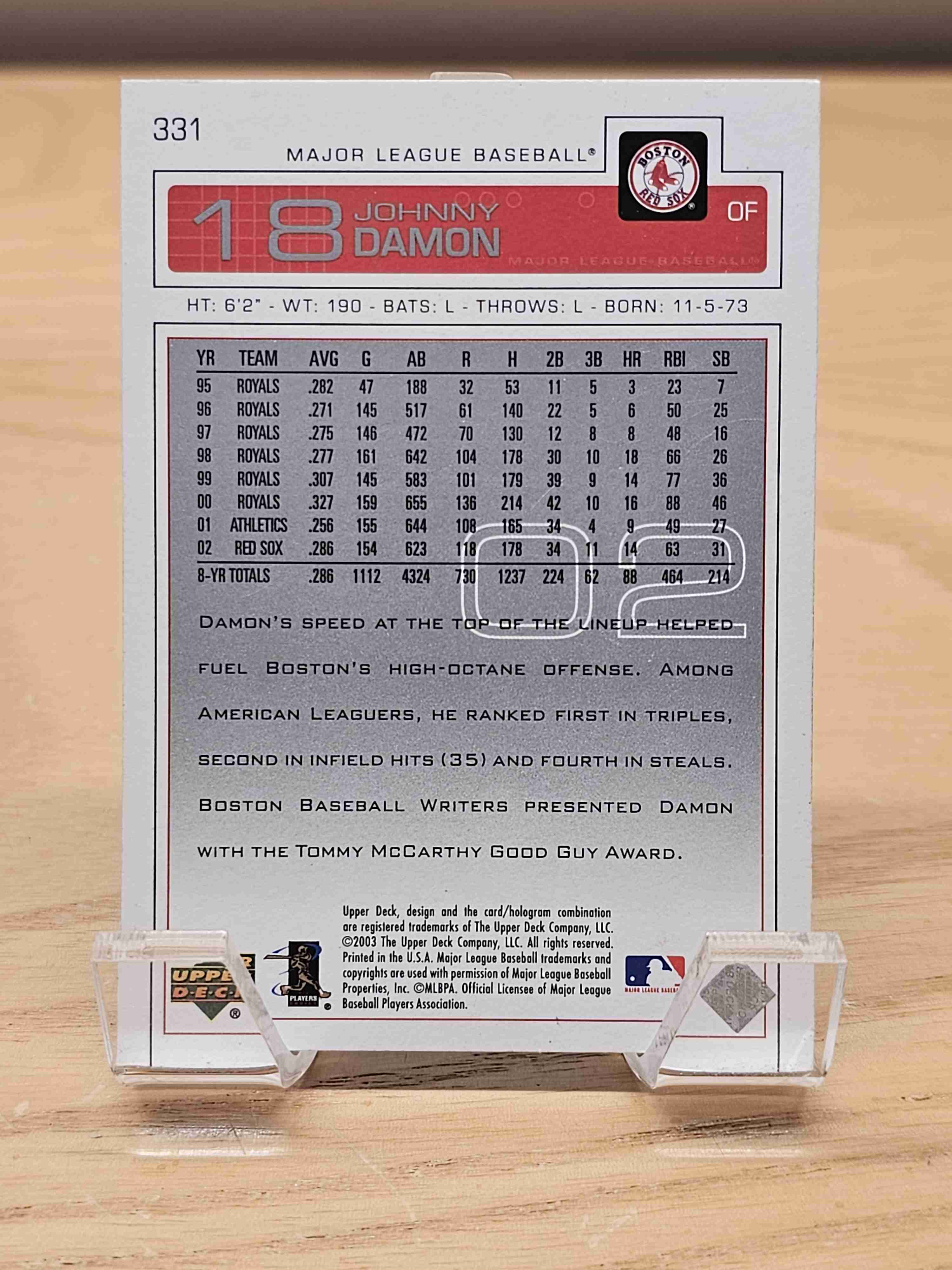2003 Upper Deck Baseball Johnny Damon Boston Red Sox Card #331