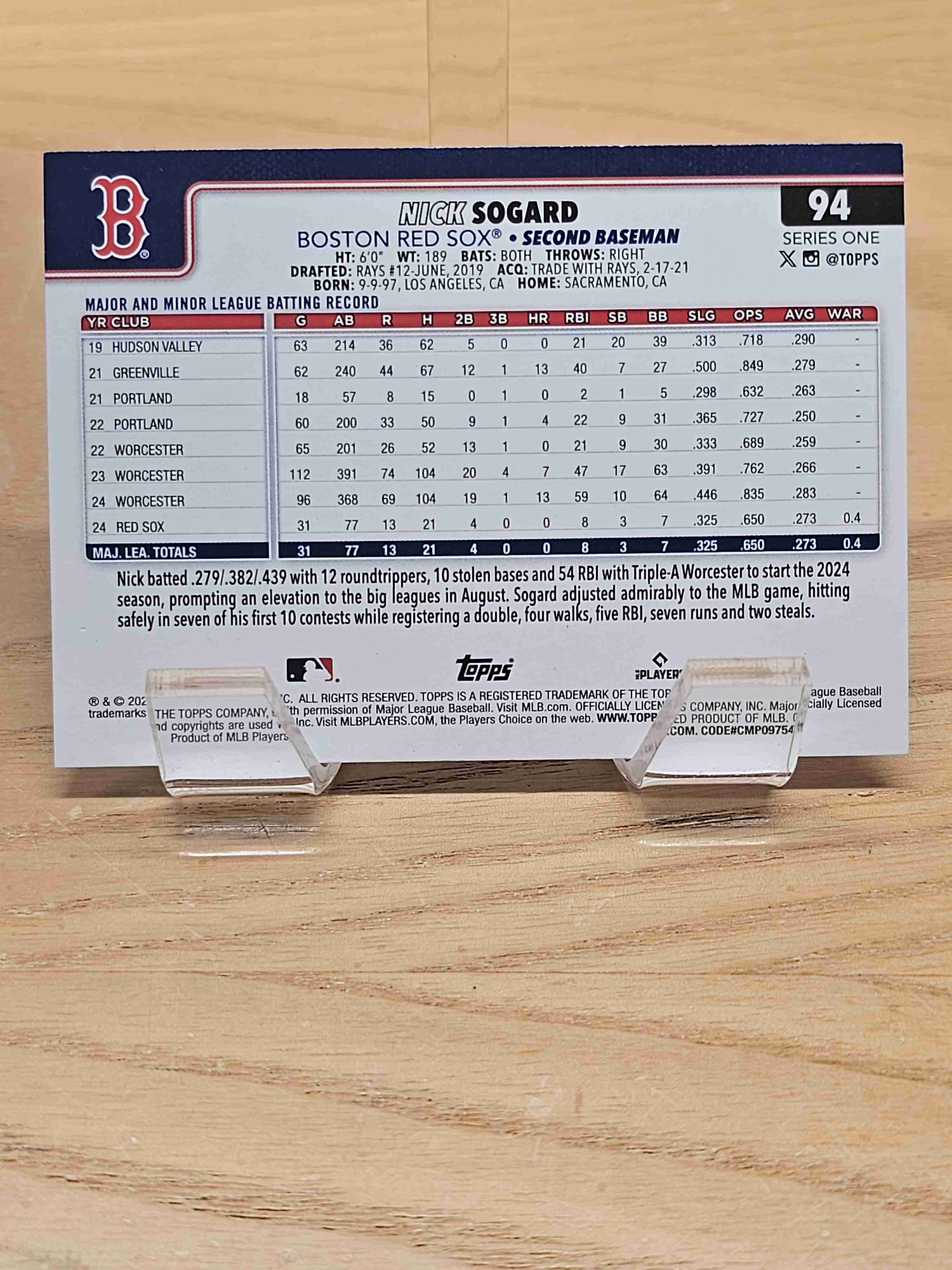 2025 Topps Series One Rookie RC Nick Sogard Red Sox #94