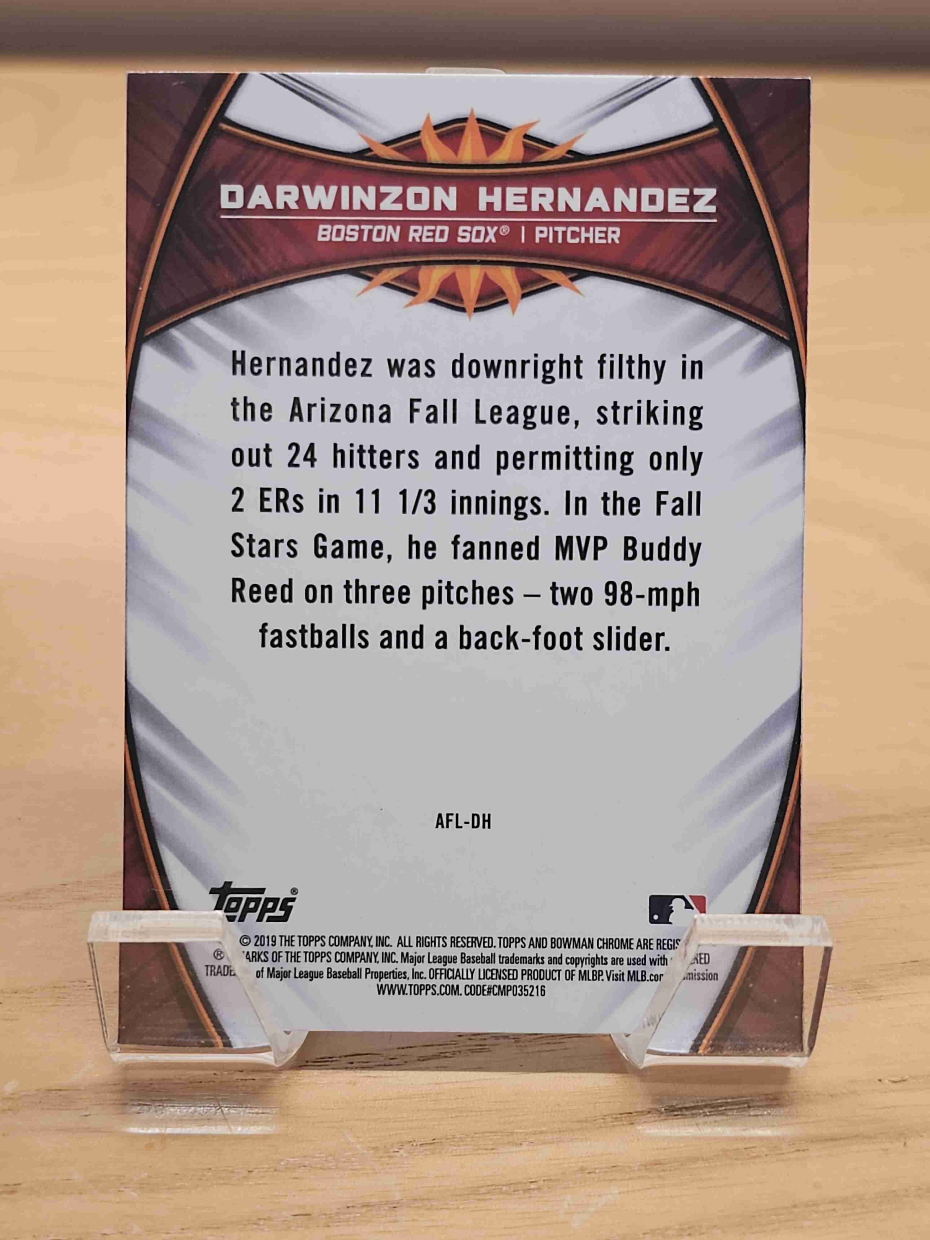 2019 Topps Chrome Baseball 2018 Arizona Fall League Darwinzon Hernandez Boston Red Sox Card #AFL-DH