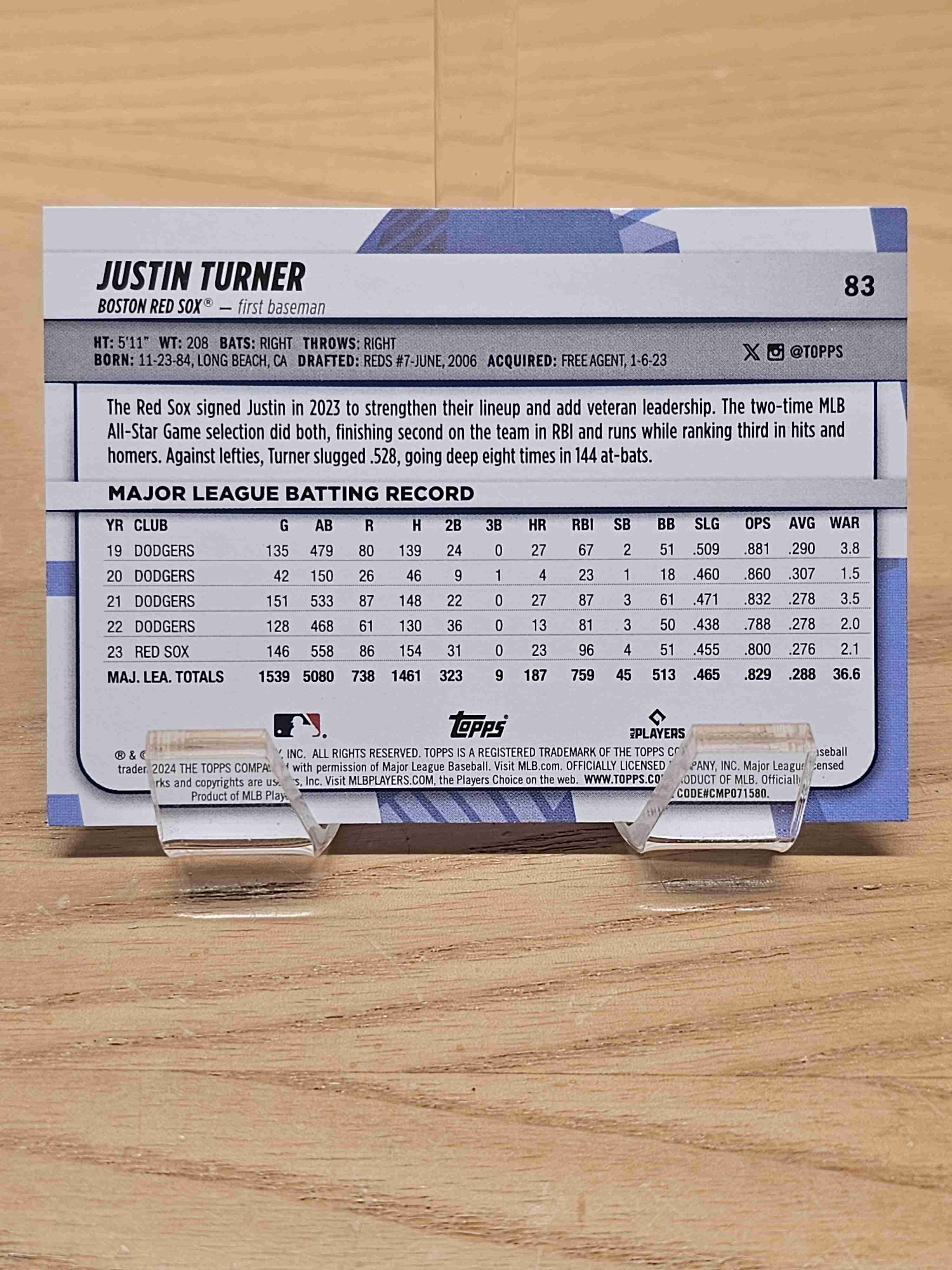 2024 Topps Big League Baseball Justin Turner Boston Red Sox Card #83