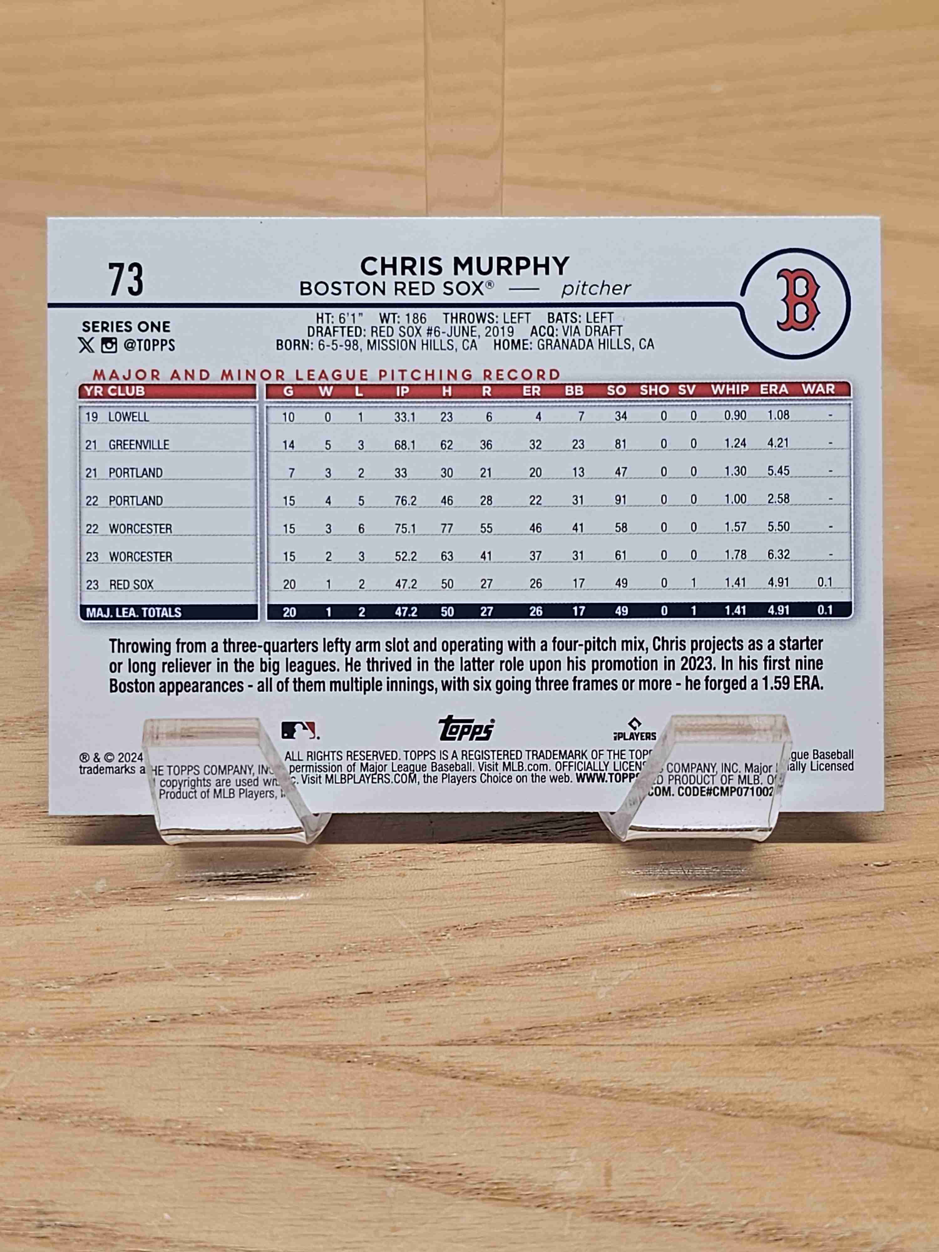 2024 Topps Series One Rookie RC Chris Murphy Red Sox #73