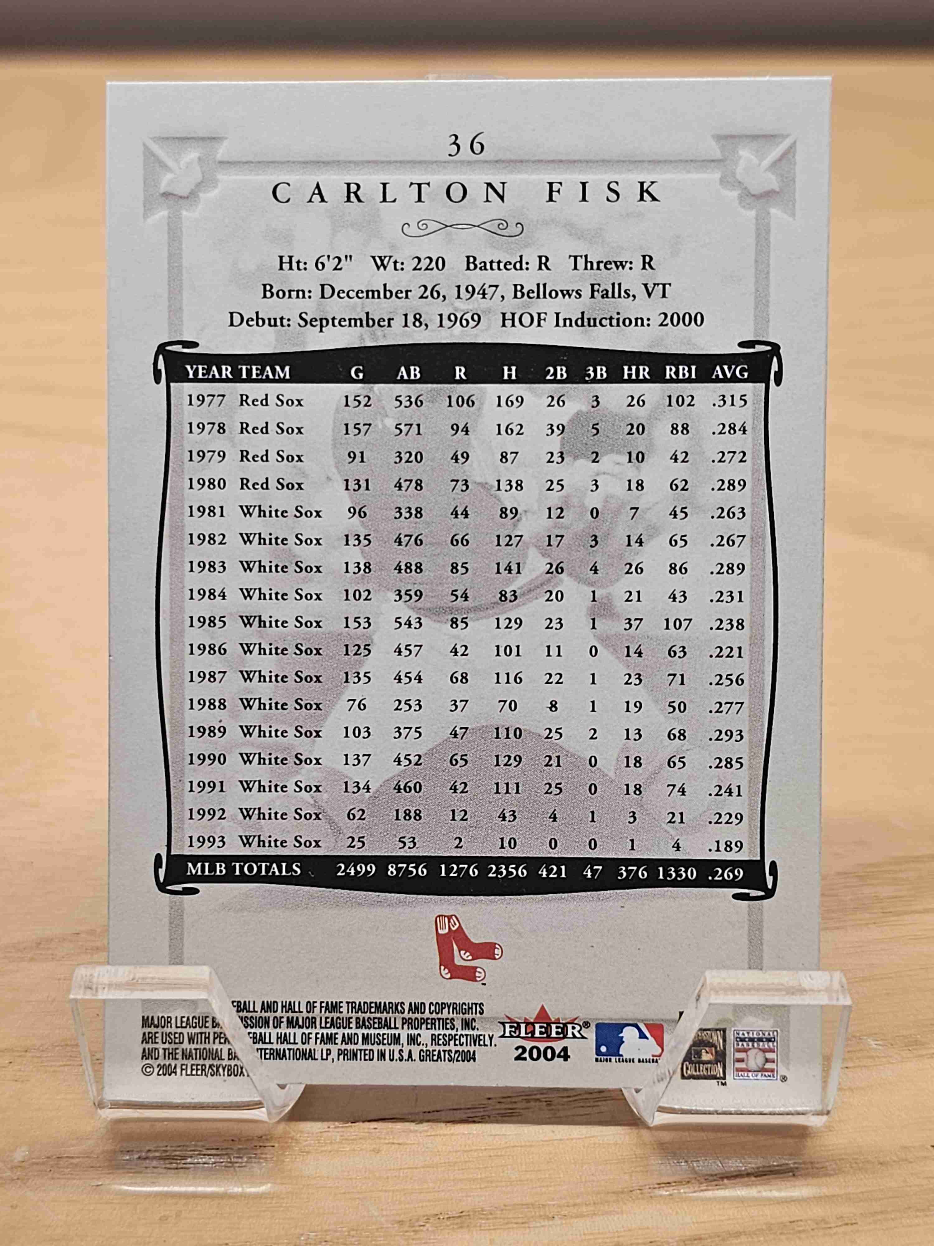 2004 Fleer Greats Of The Game Carlton Fisk Red Sox #36