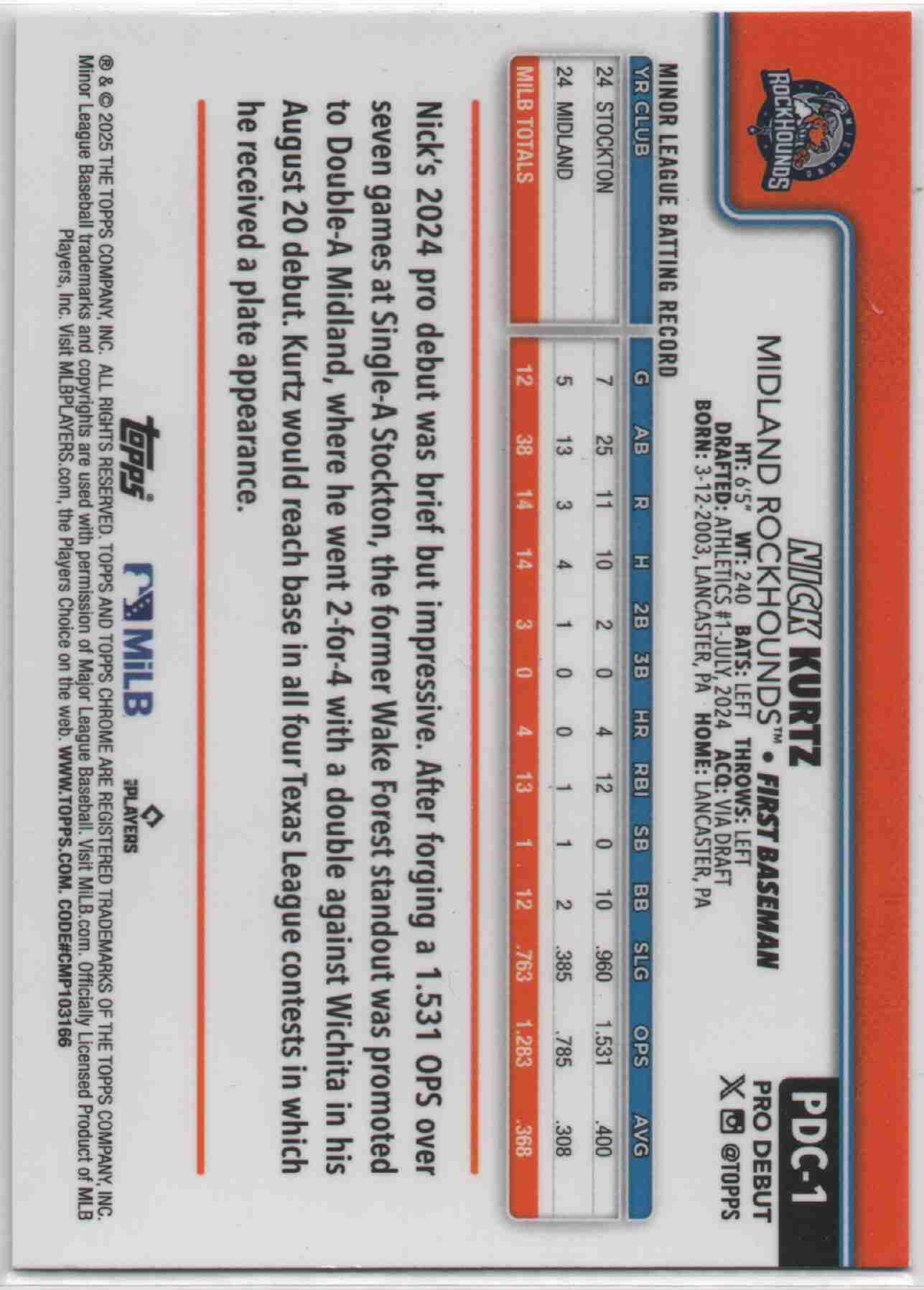 Nick Kurtz 2025 Topps Pro Debut Chrome #PDC-1