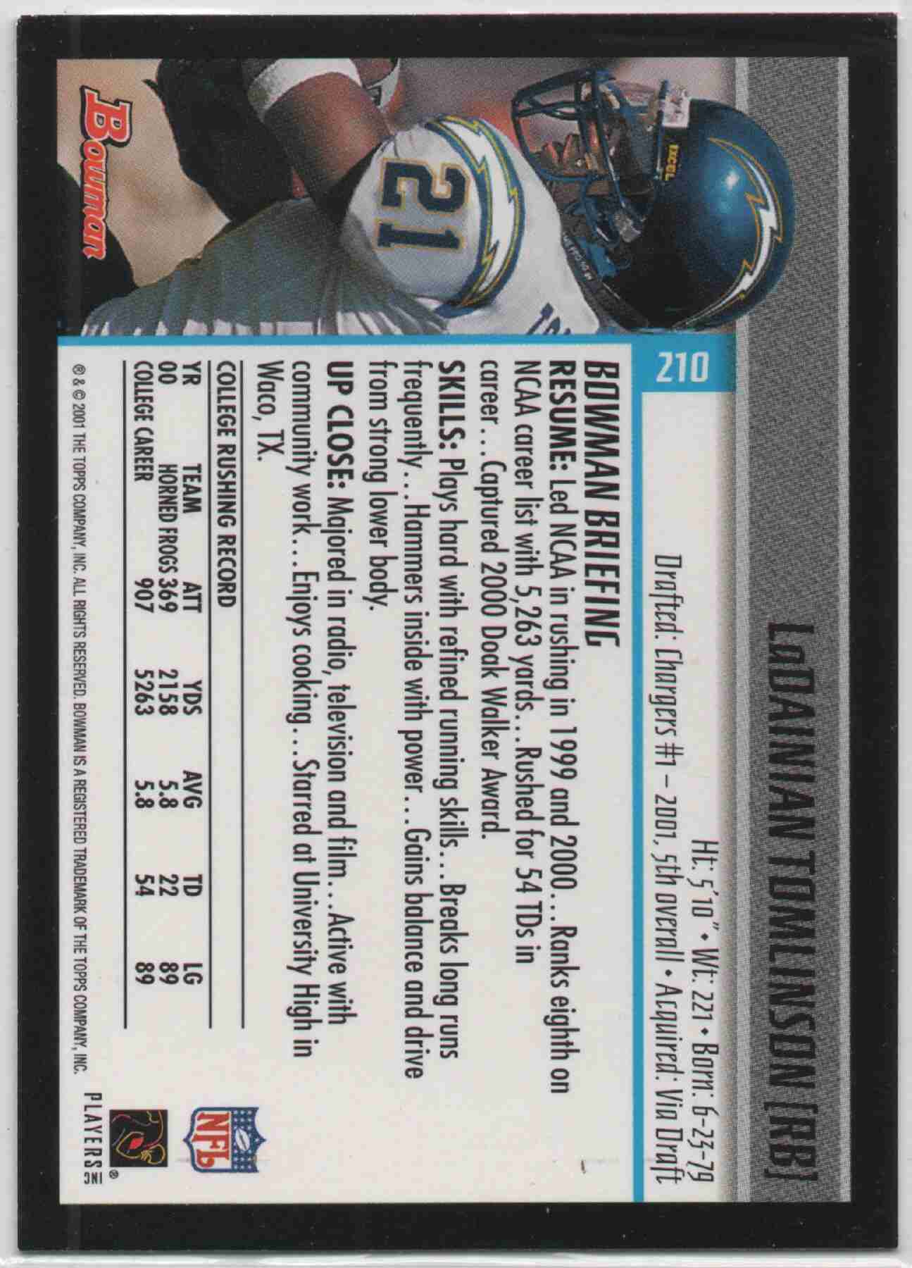 LaDainian Tomlinson 2001 Bowman #210 Rookie Card