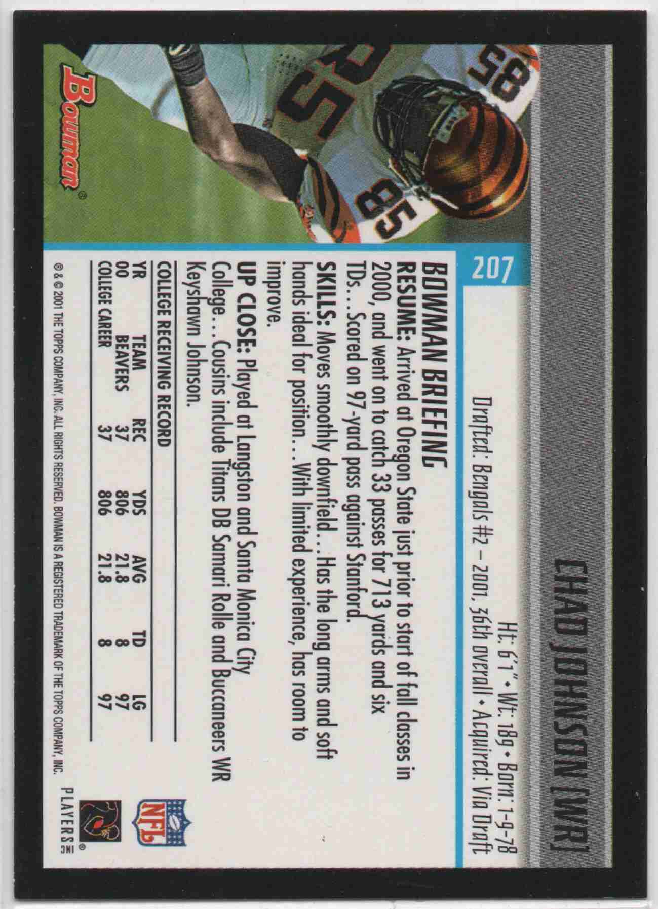 Chad Johnson (Ochocinco) 2001 Bowman #207 Rookie Card