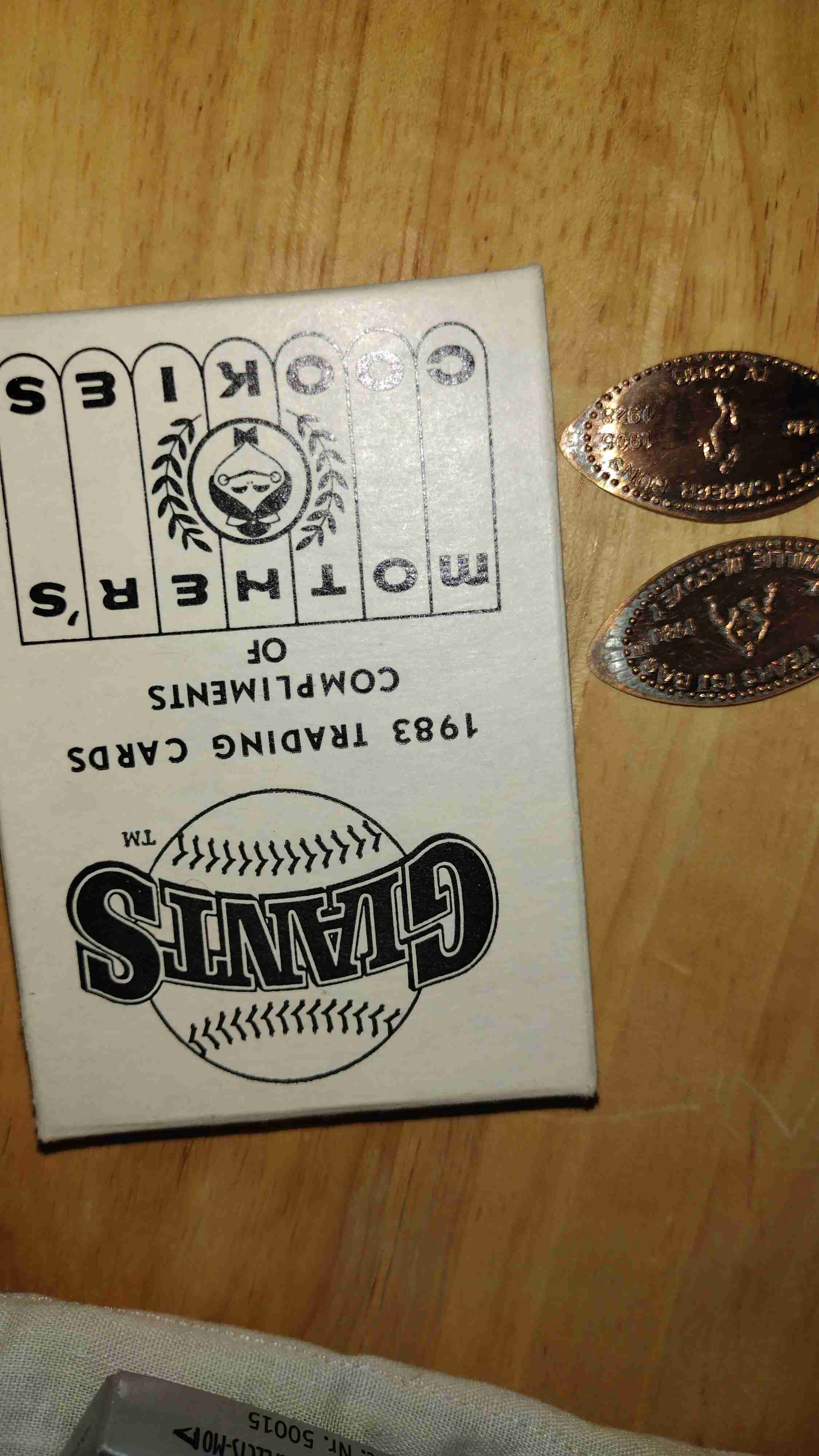 1983 Mothers Cookies Giants +elongated coins