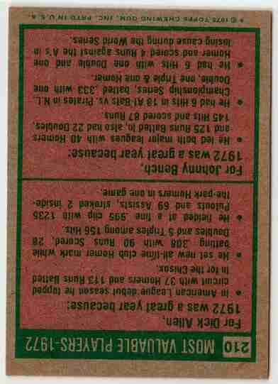 1975 Topps Mini 1972 MVP w/Bench & Allen