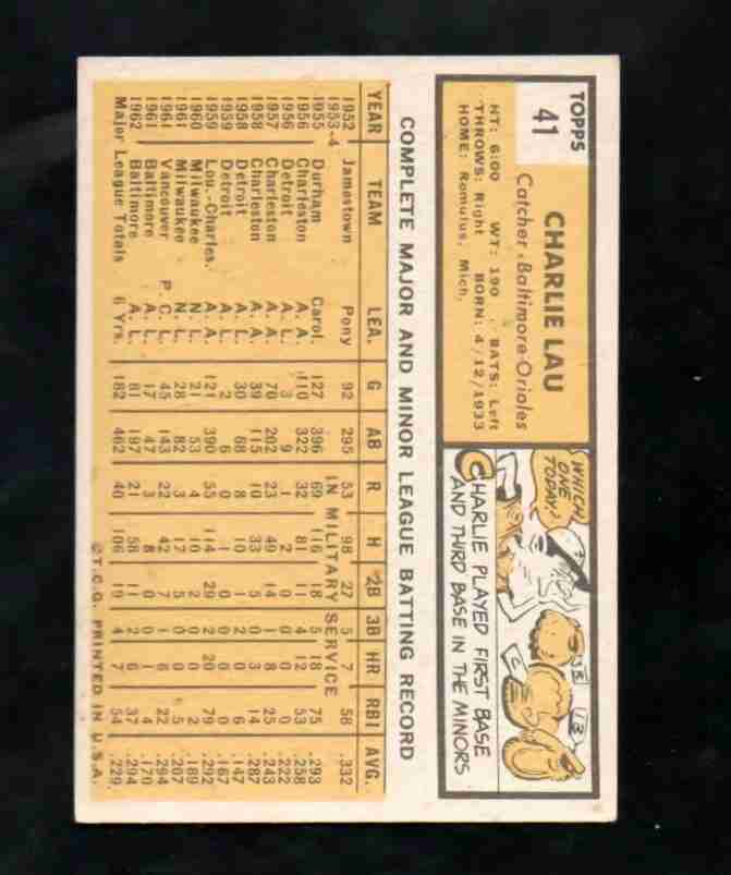 1963 Topps # 41 CHARLIE LAU Baltimore Orioles EX+