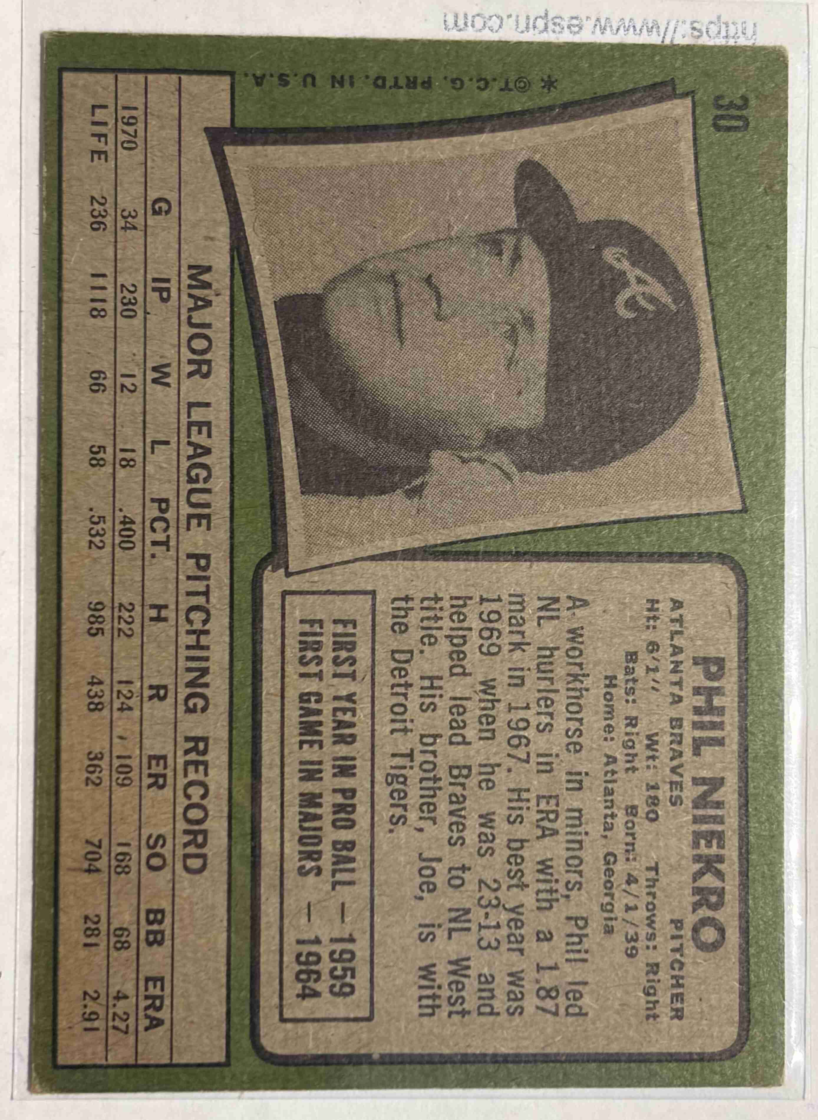 1971 Topps Baseball Phil Niekro #30 EX condition. Shipped in PWE