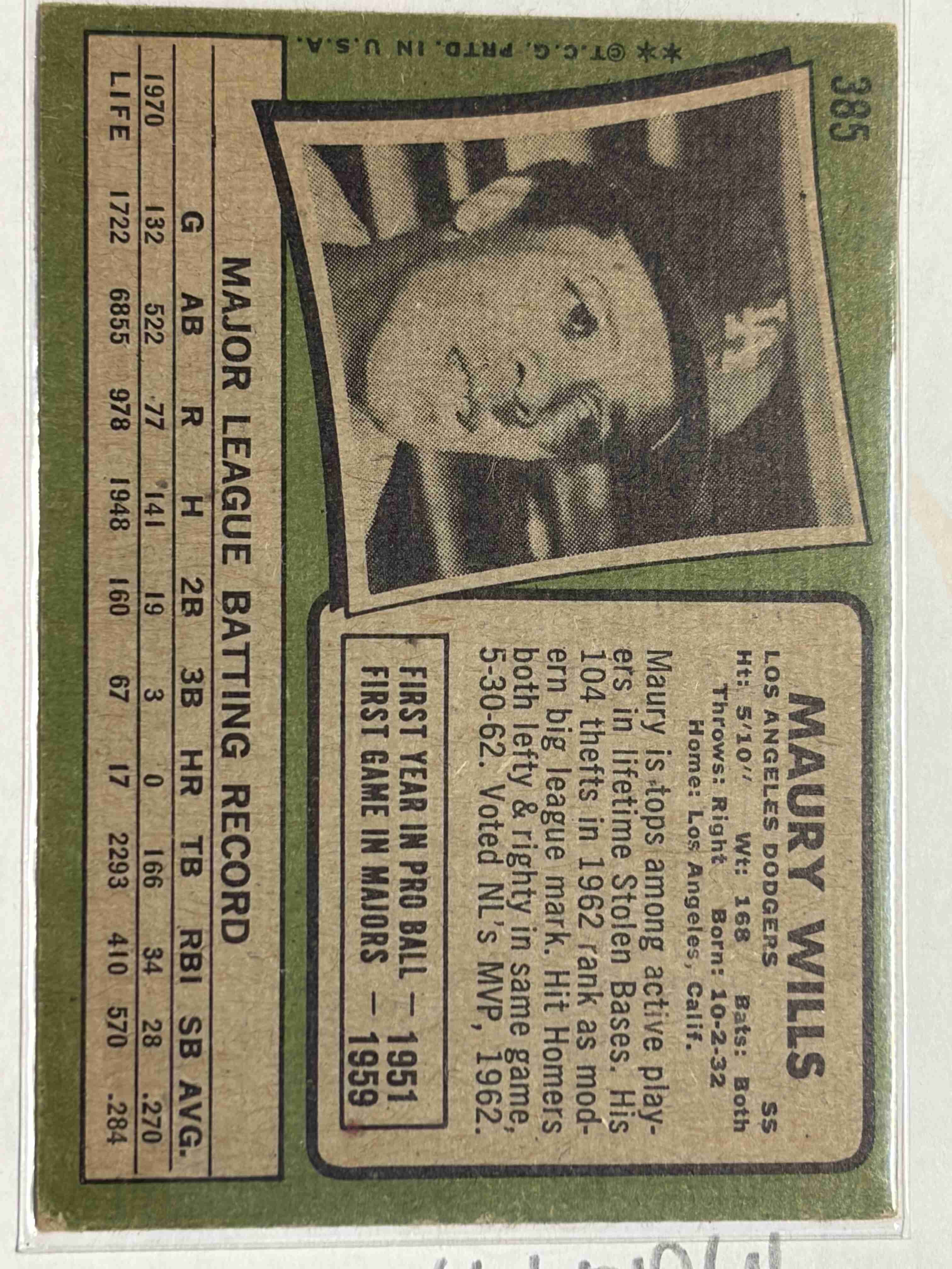 1971 Topps Baseball Maury Wills #385 EX condition. Shipped in PWE