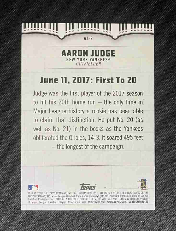 A2018 Topps Aaron Judge Highlights #AJ-9 New York Yankees Pinstripe