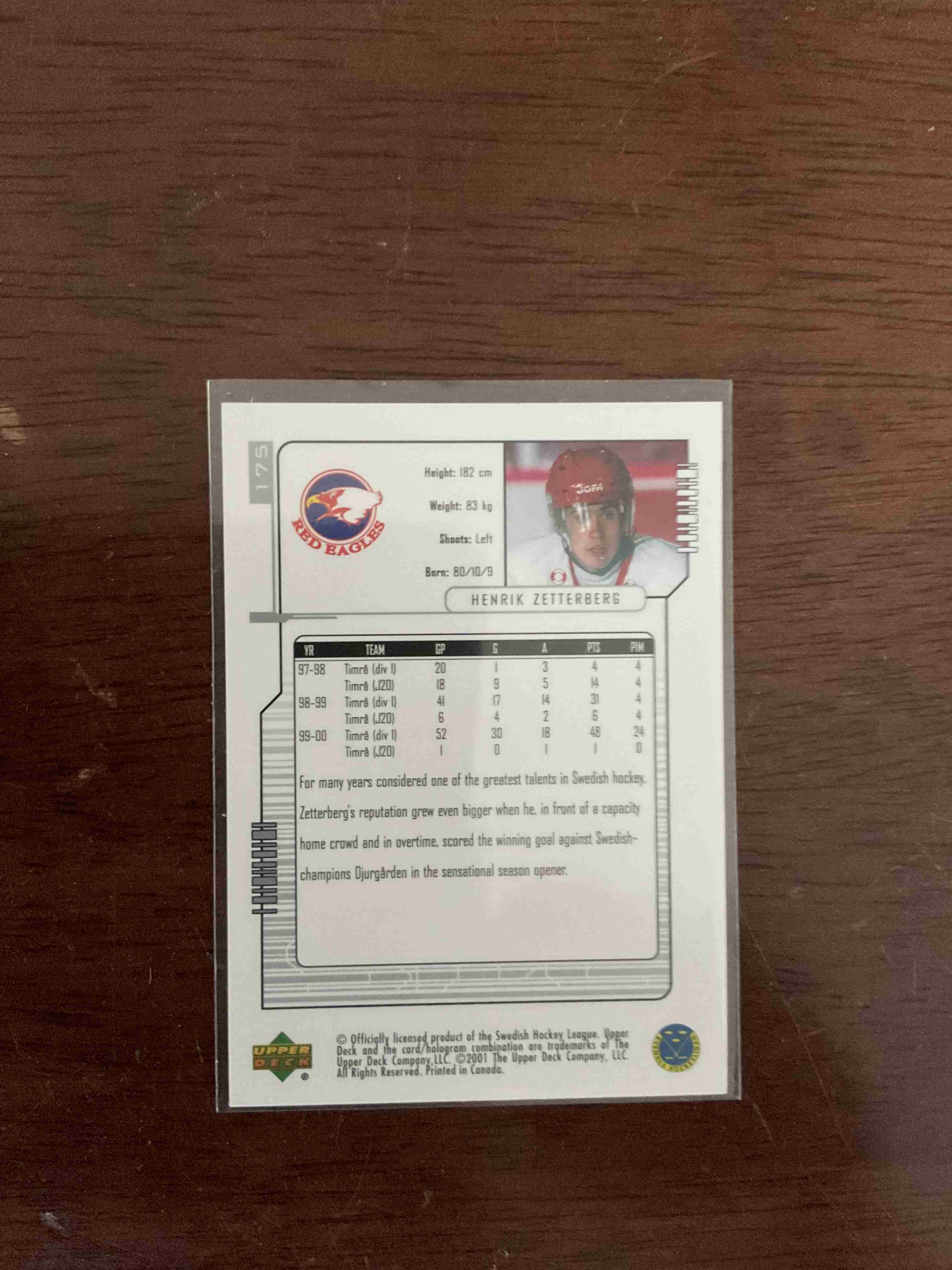 2000-01 HENRIK ZETTERBERG SWEDISH ERC ROOKIE RED WINGS