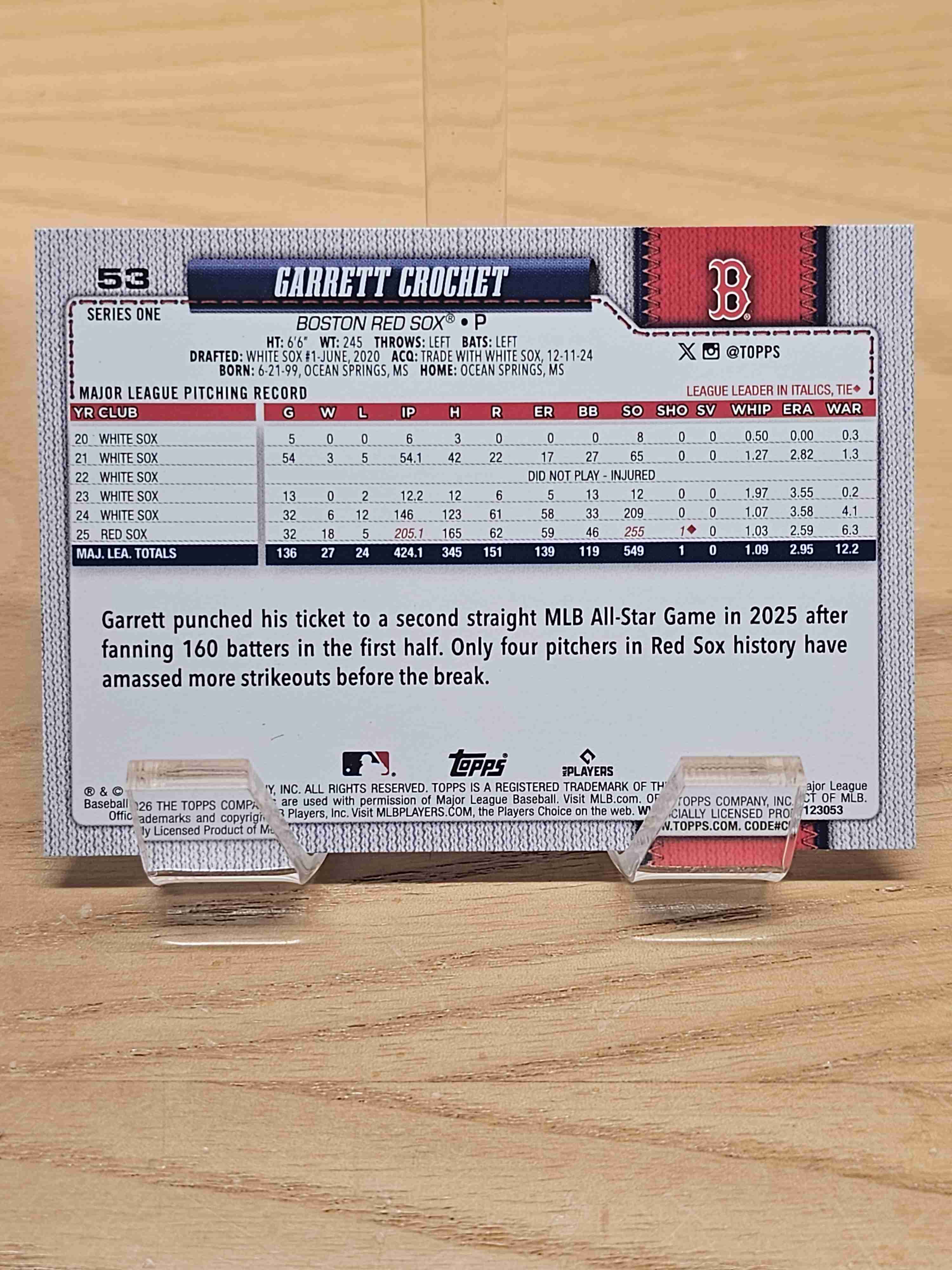 2026 Topps Series One Baseball Garrett Crochet Boston Red Sox Card #53