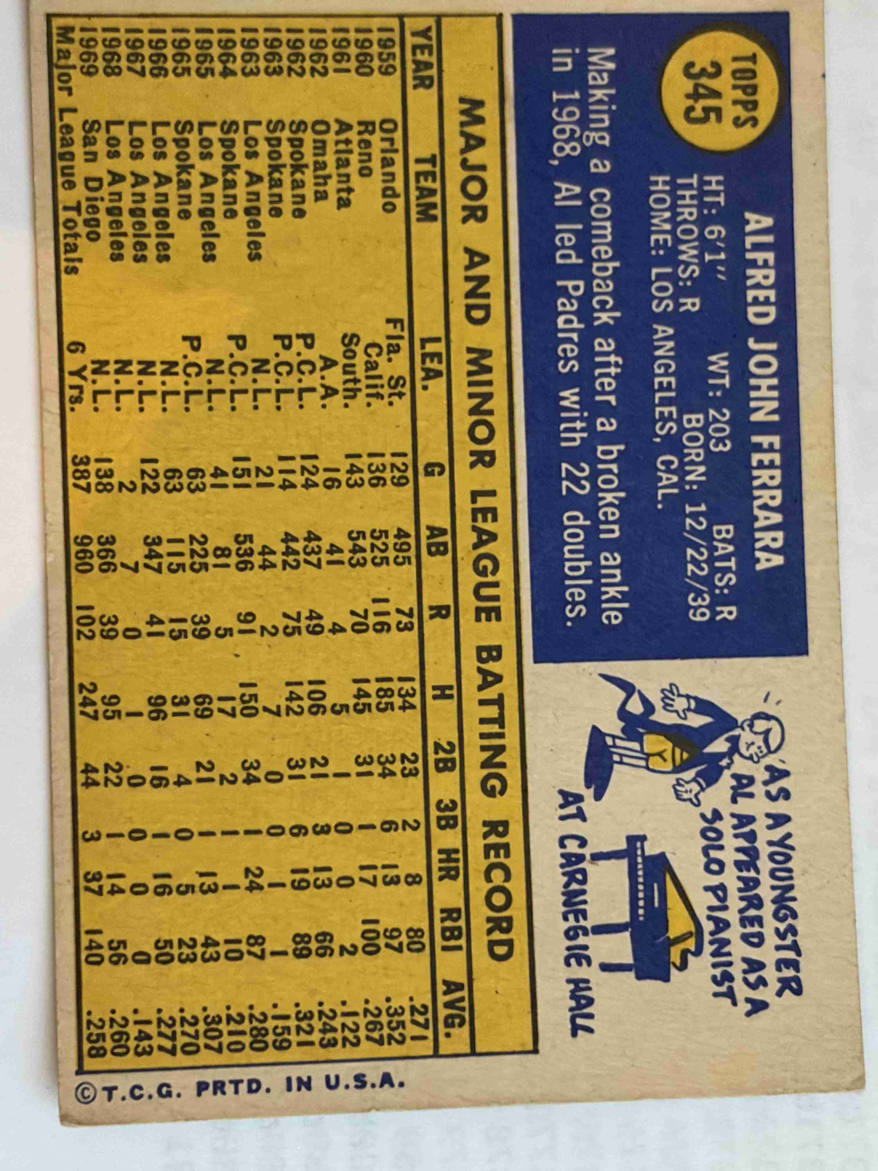 1970 Topps Baseball Al Ferrara #345 EX condition. Shipped in PWE