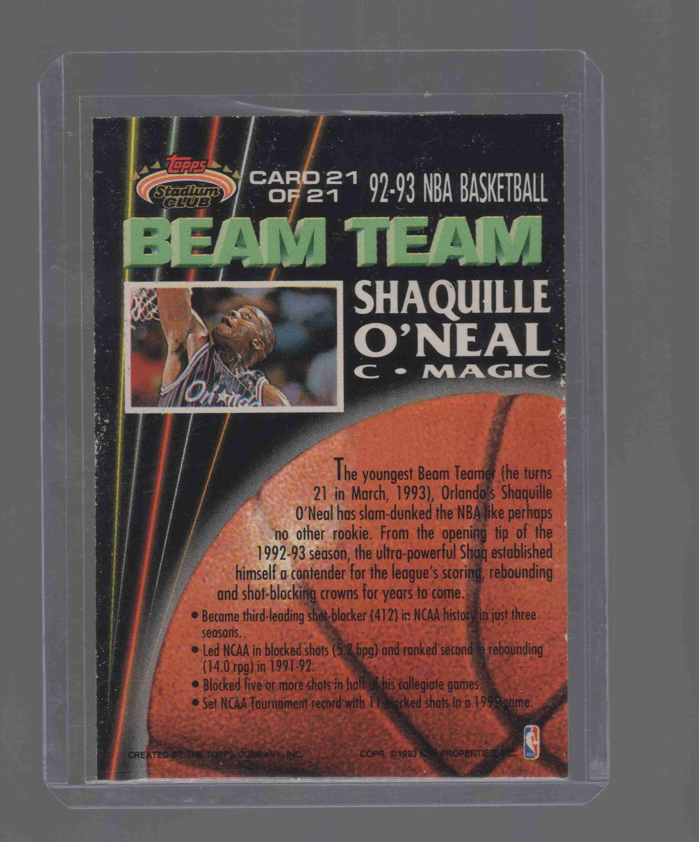 Shaquille O'Neal 1992-93 Beam Team Members Only RC VG